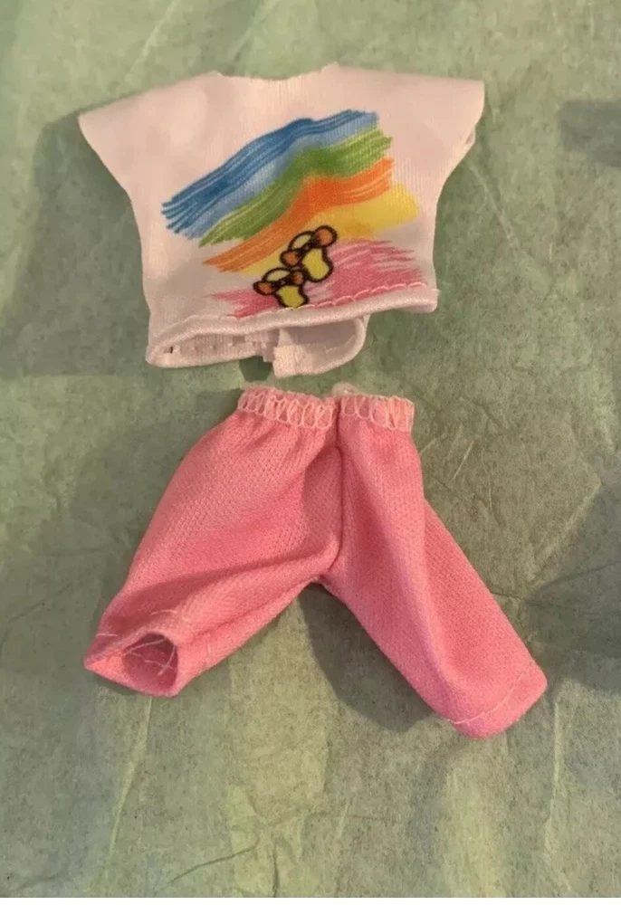 No doll is included in this listing Up for sale is a lot of Barbie Club Chelsea Boy size Doll clothes, Darrin doll size. This set includes 2 shirts, 2 shorts, book bag and 1 pair-of shoes, all made from a combination of cloth and plastic materials. Perfect clothes to mix and match for your Darrin doll.