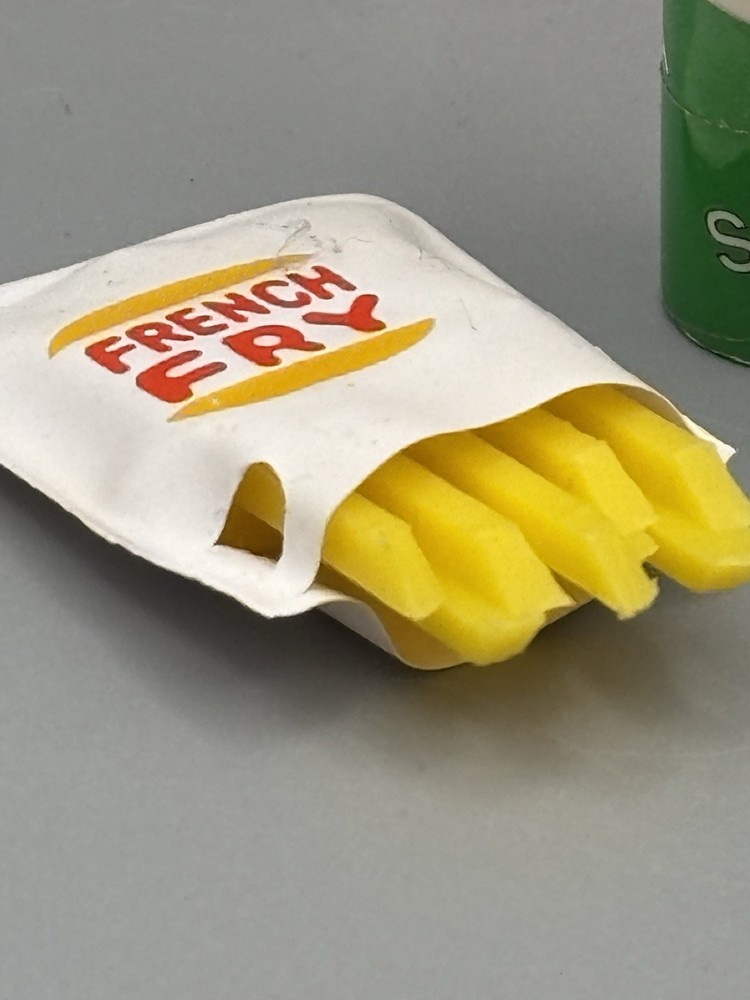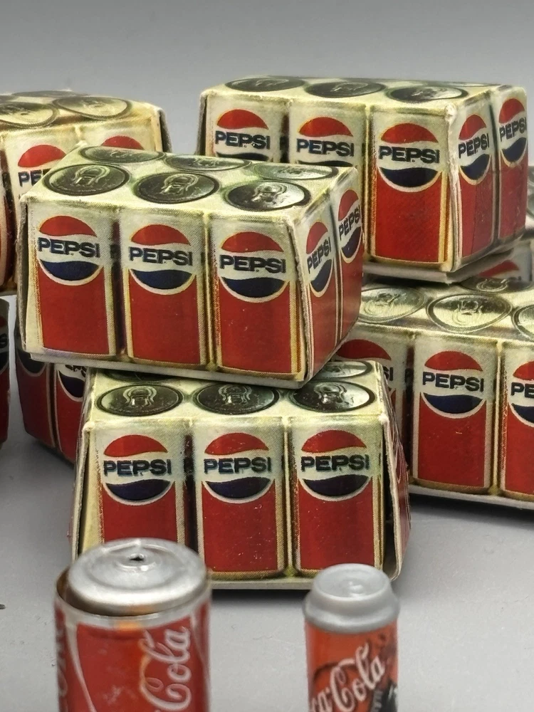 Step back in time with these authentic 1980's Barbie Doll Accessories, a nostalgic addition to any vintage toy collection. This set features classic cardboard soda cans, replicating the iconic Coke and Pepsi bottles, along with a miniature hot dog, capturing the essence of a beloved era. Ideal for collectors and enthusiasts, these accessories are designed for Barbie dolls and up, appealing to those aged 17 years and older. The set's rétro charm is sure to evoke memories of childhood play and the simple joys of the 80's. Add a touch of vintage flair to your display with these charming pieces.