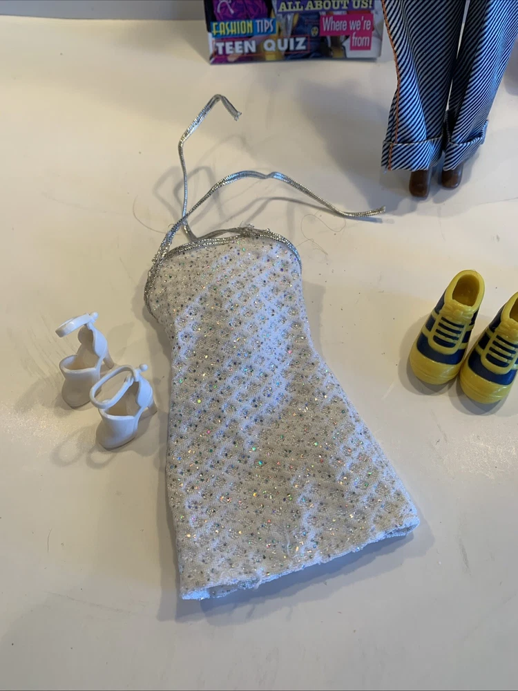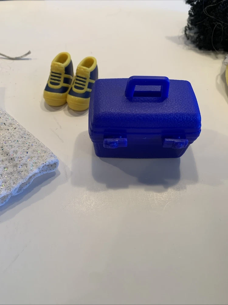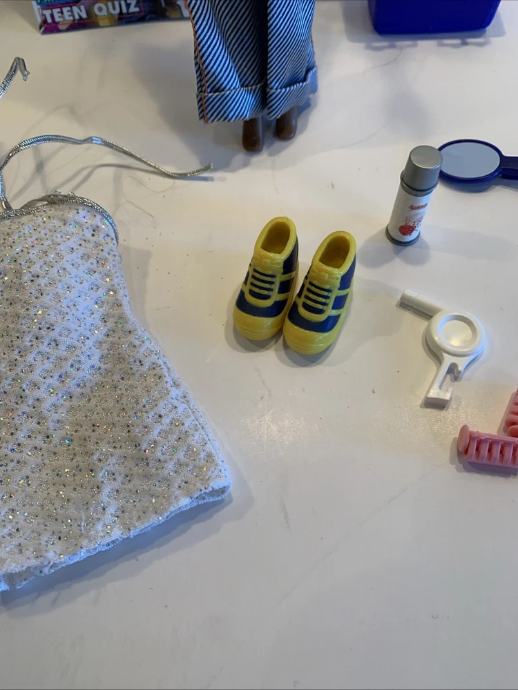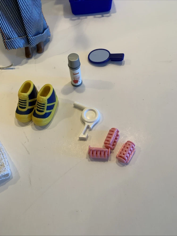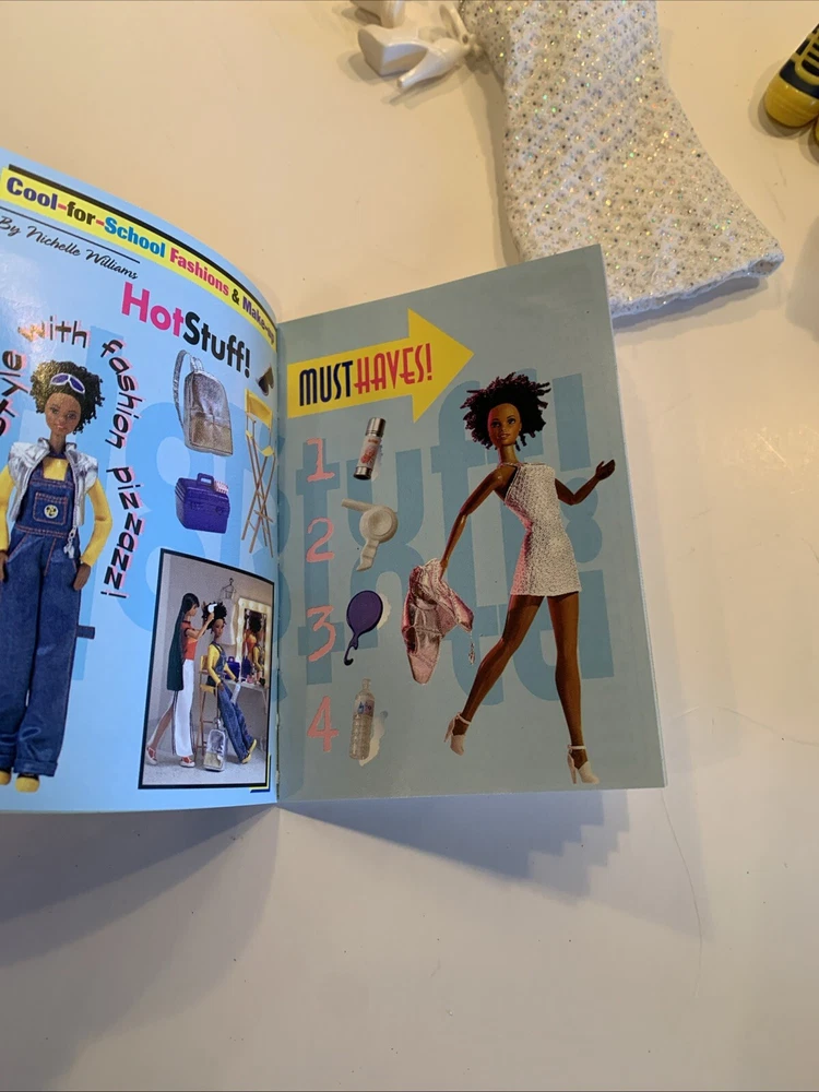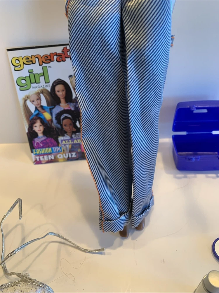 Embrace the nostalgia with the Barbie Generation Girl Nichelle doll, a cherished collectible from Mattel, complete with fashion-forward attire and accessories. This 1999 ensemble features Nichelle dressed in casual attire, including a fashionable vest, overalls, and a coordinating dress, all complemented by a backpack and shoes that perfectly capture the essence of the era. Designed for the 11-inch fashion doll, this outfit set is a testament to the African American character's timeless style. It's an original piece from the 1990-1999 time period, offering a glimpse into the fashion and beauty themes that Barbie represents. This doll, clothes, and accessories set is a must-have for collectors and fans of the iconic brand, making it an exceptional find for anyone looking to add a touch of the late '90s to their collection. Has rollers, blow dryer, mirror, hairspray, case, White dress, with white heels, Water bottle Backpack