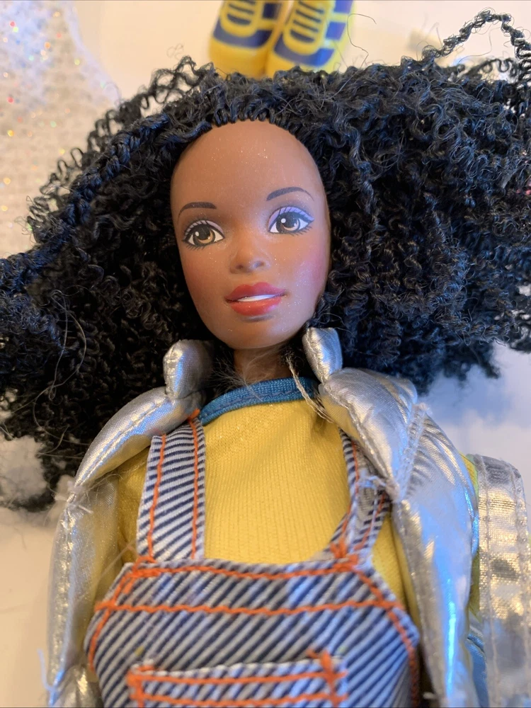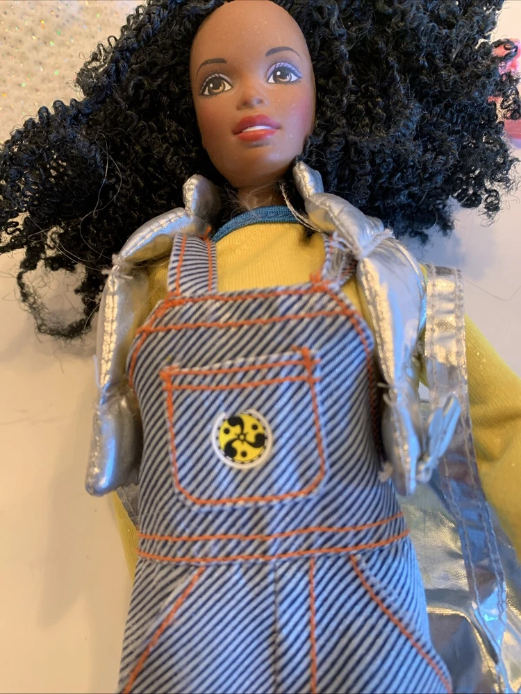 Doll Gender: Girl Doll Year Manufactured: 1999 Handmade: No Ethnicity: African American Type: doll with clothes Clothing Style: Casual Time Period Manufactured: 1990-1999 Material: Cloth Clothing Type: Dress, overalls, vest, shirt Compatible Doll Size: 11 in Character: Barbie Personalized: No Doll Type: Fashion Doll Original/Licensed Reproduction: Original Theme: Fashion & Beauty Antique: No Set Includes: Backpack, Dress Brand: Mattel