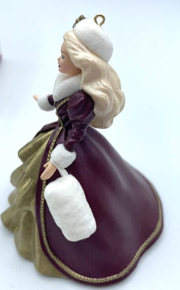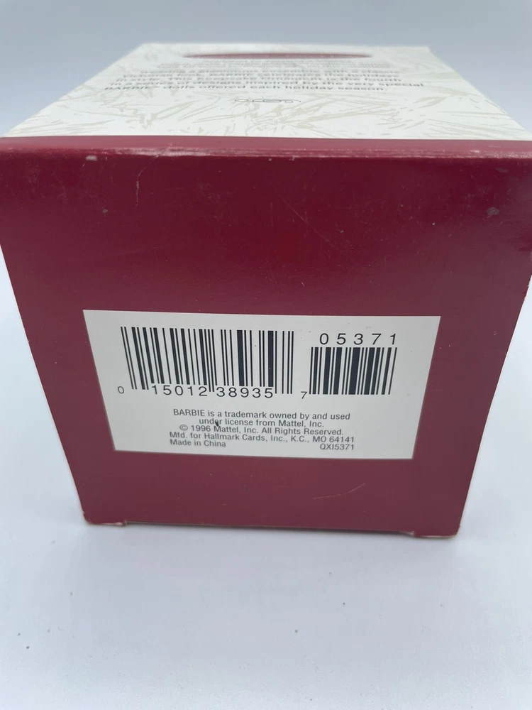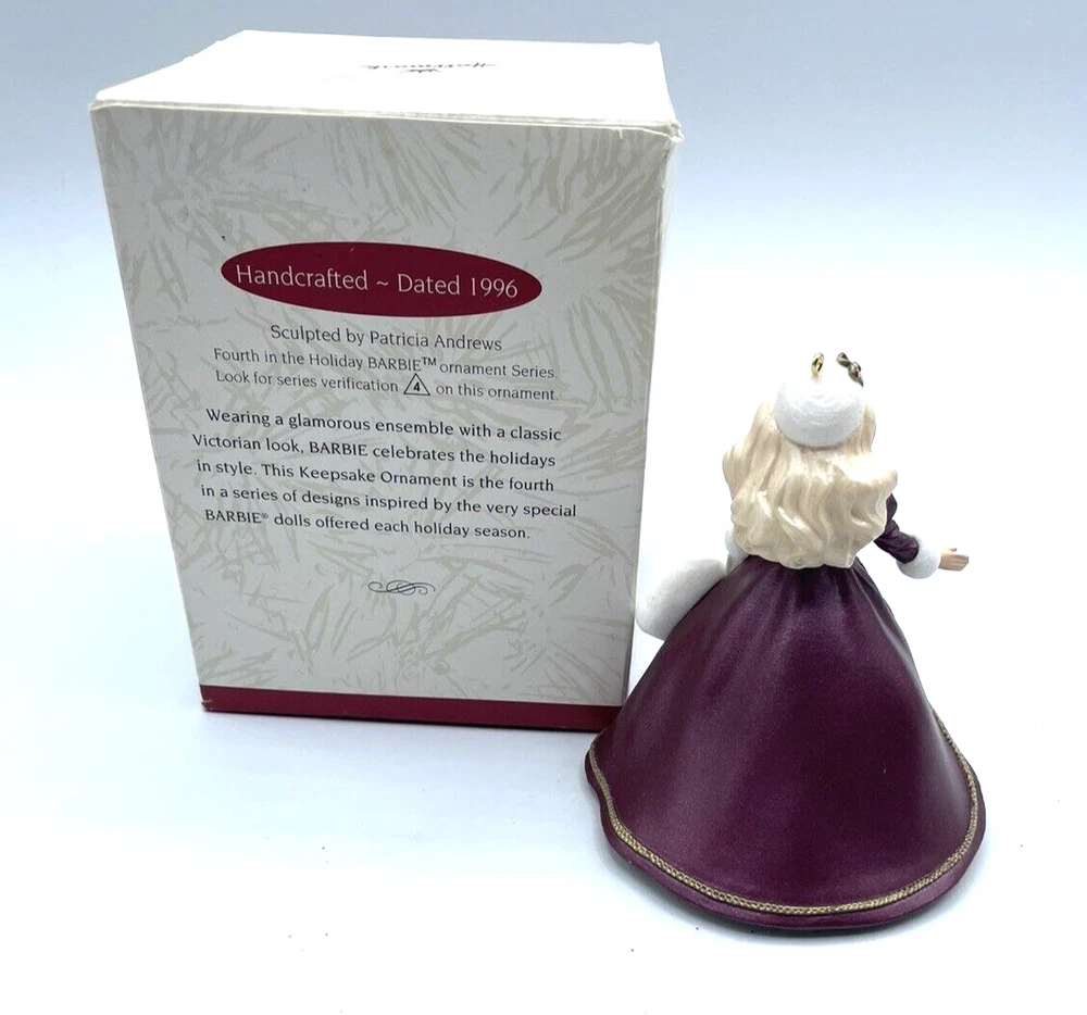 Character:Holiday BarbieNumber of Items:1Collection:OrnamentsTheme:HolidayTime Period Manufactured:1990-1999Set Includes:OrnamentColor:MulticolorSize:SmallType:OrnamentOccasion:ChristmasSubject:PrincessBrand:HallmarkFranchise:BarbieSeller Notes:“No damage”Year Manufactured:1996