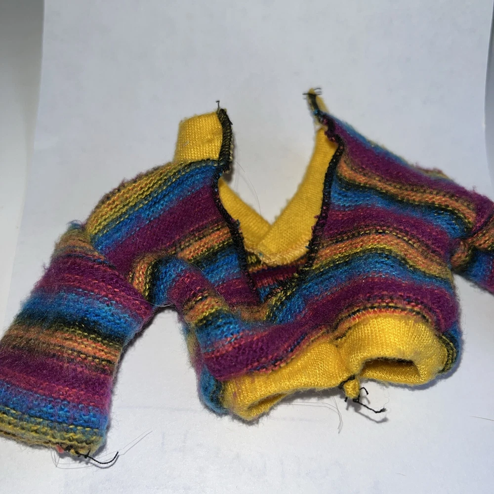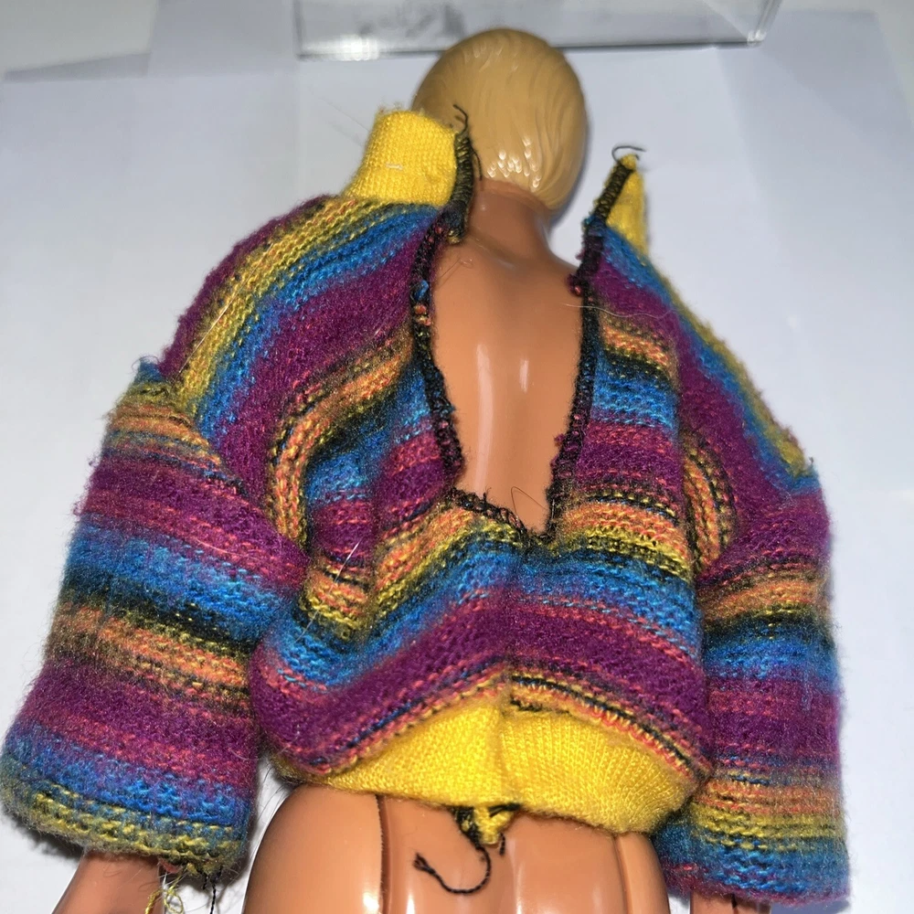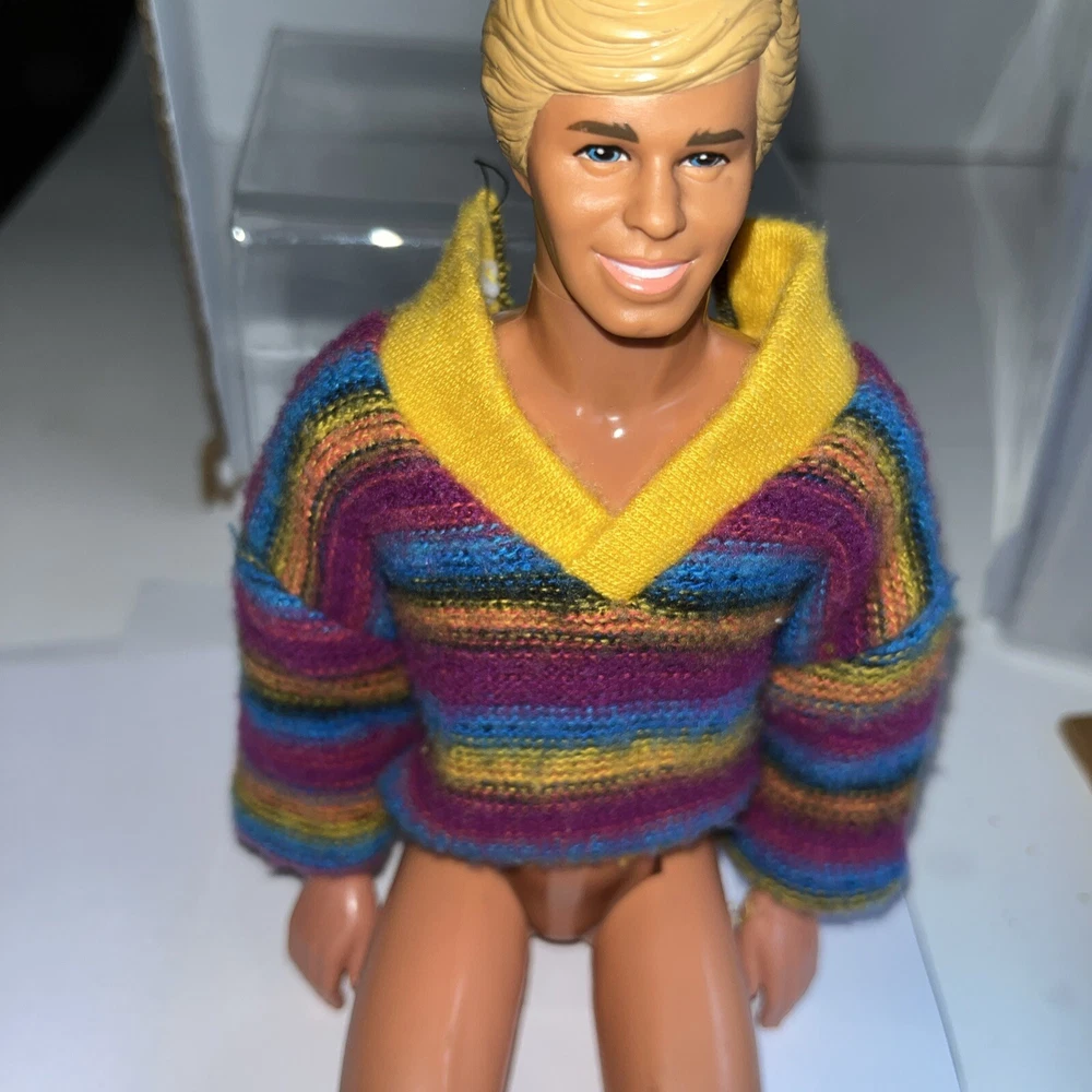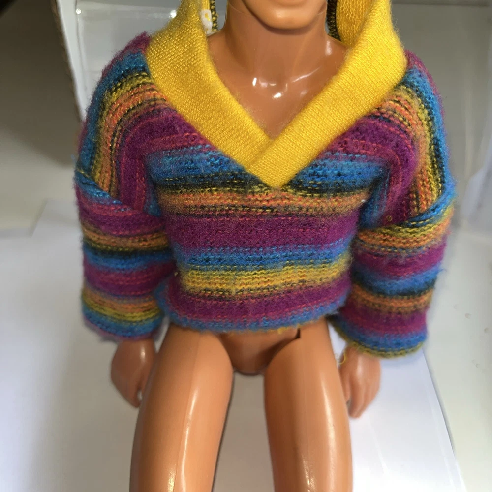 Hi! Used Please look at the pictures Missing one snap May smell musty Doll for display, not included Ken sweater Missing one snap See pictures Multicolor sweater Missing a snap Tag Genuine Ken Used May smell musty No doll Doll for display only Thank you Pay me securely with any major credit card through PayPal!