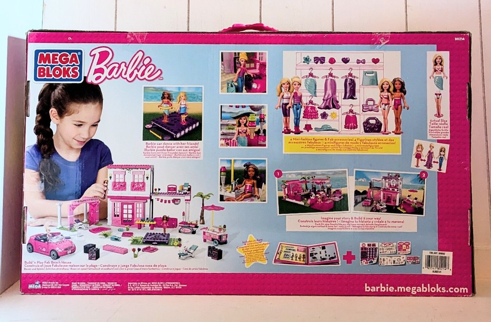 Barbie Mega Bloks Deluxe Beach House with 4 Dolls Pink Car & Ice Cream Cart