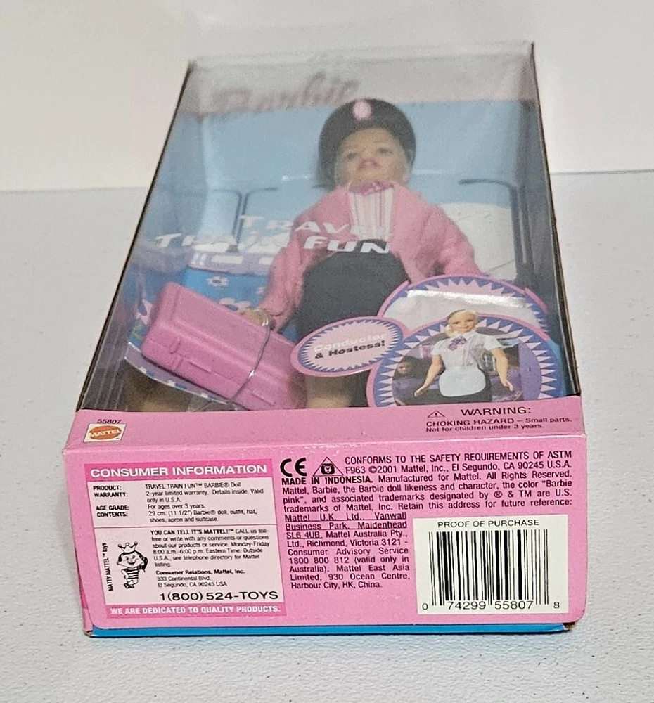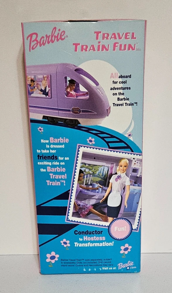 Embark on a journey with the Barbie Travel Train Fun doll, a vibrant addition to any Barbie collection. This 2001 Barbie by Mattel features a Train Conductor Barbie including a charming apron (You can change her into a hostess), stylish hat, and a sleek suitcase, all designed to fit Barbie dolls. The delightful color palette and whimsical details capture the essence of Barbie's adventurous spirit.Ideal for collectors and imaginative play enthusiasts, this doll embodies the career doll narrative with an unopened package that ensures the originality and quality of its contents. Relive the nostalgia of the early 2000s or gift it to someone who appreciates the timeless charm of Barbie's world.