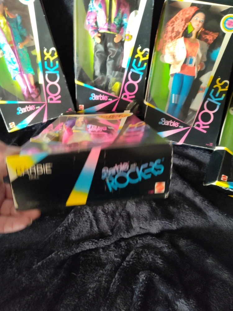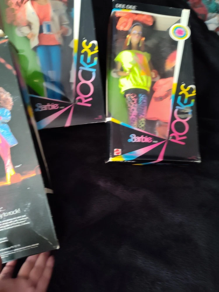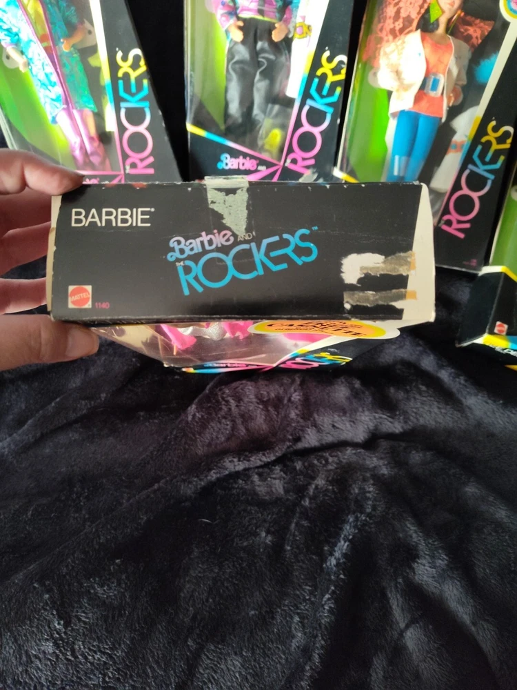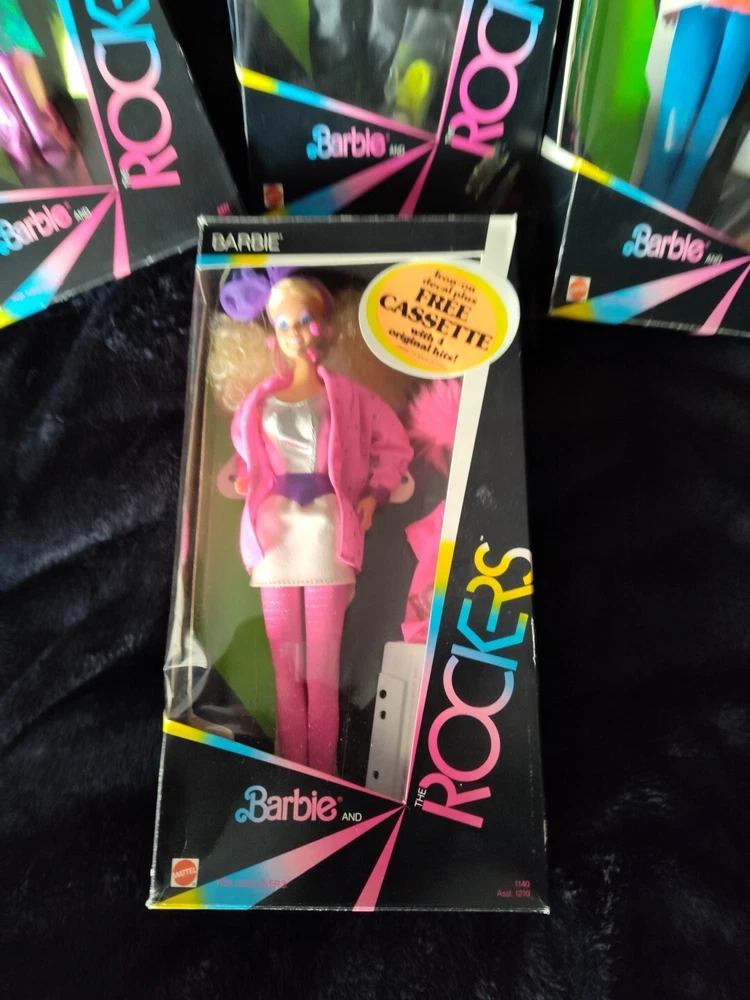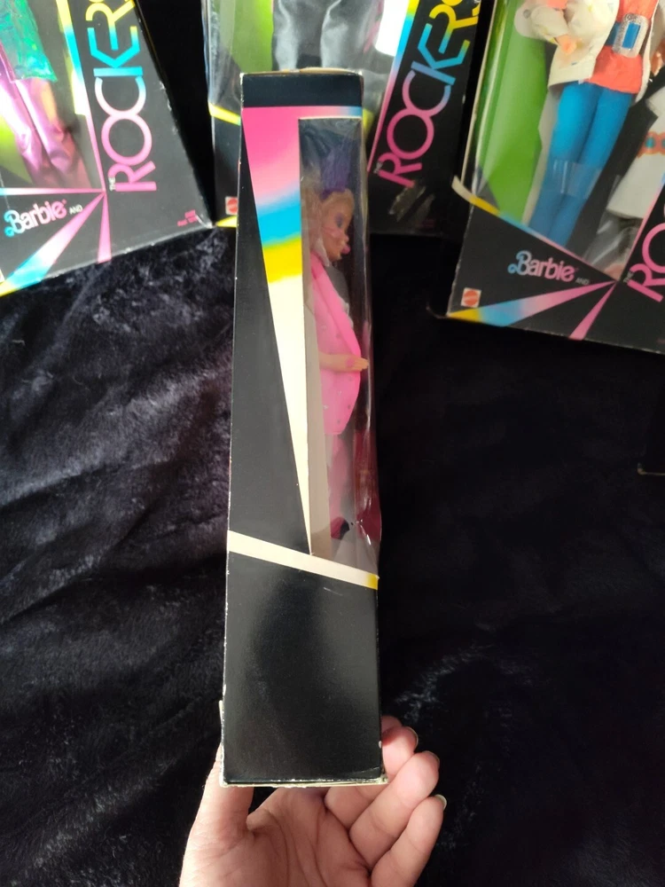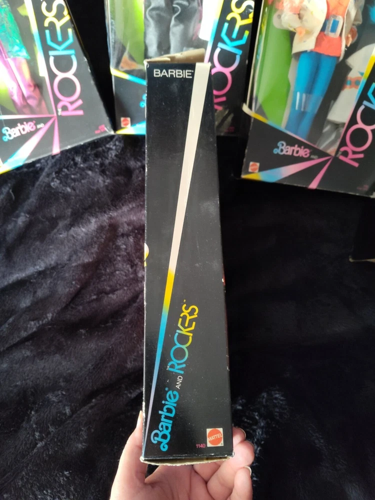 This is a vintage 1985 Barbie doll from Mattel, featuring the character of Barbie & the Rockers. The doll has curly blonde hair, blue eyes, and a light complexion. It comes with original packaging and includes a cassette and iron-on decal accessory. The doll is 11.5 inches in size and is a single unit. It is an original, licensed reproduction of the popular Barbie franchise by Mattel. The doll is not handmade and was manufactured in the Philippines. It is a fashion doll with a Caucasian ethnicity and is perfect for all occasions. This Barbie is 1 of a set of 5 that are part of Barbie and The Rockers. There is slight wear and tear on the box. I bought this when I was a teenager so I know it has never been removed from the box.