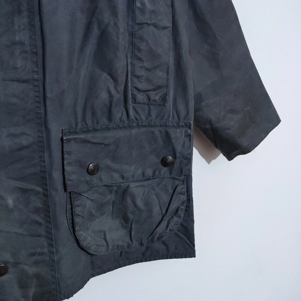 Barbour Beaufort Wax Jacket Mens M Navy Blue Vintage British Heritage Mens vintage 2000s navy blue Barbour Beaufort wax jacket in a classic British heritage outdoor style. Tagged size medium C38/97cm. Features cord collar, tartan lining and traditional field utility detailing. 23" P2P 31" Length Preloved, has some small holes on the sleeves, a tear at the back and couple of holes in the interior lining Barbour wax jackets naturally show light marks, shading or slight “imperfections” in the finish — this is normal and caused by the natural movement and displacement of wax over time. Due to the waxed cotton construction and traditional treatment, jackets may also carry a light musty or waxy odour, particularly if stored, worn outdoors, or preloved. Regular rewaxing is recommended for all Barbour jackets, including preloved ones, to maintain protection and appearance. Please understand this is genuine rugged outdoor wear, built for function and character, not pristine perfection. Rewaxing should be expected now or later. #barbour #bedale #waxjacket #heritage #outdoor