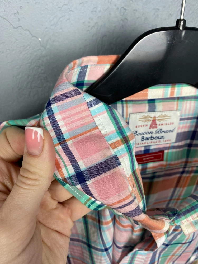Barbour Biggin Mens Long Sleeve Plaid Shirt Size XXL All measurements in centimeters Shoulders - 53 cm Pit2pit - 61 cm Sleeve length from the shoulder - 70 cm Full length from the collar by back side - 82 cm Please check all Photos , also i can make detailed photos Worldwide shipping from Ukraine with tracking number. Sending within 48 hours after payment. Delivery time: Europe - 12-20 working days Asia - 14-20 working days USA - 15-25 working days in Canada and Australia - shipping costs 10$ more!!!! Delivery time about 4 weeks. Oceania - 20-35 working days Other countries - 15-25 working days I can send several things in one package. This way you save some amount on delivery.