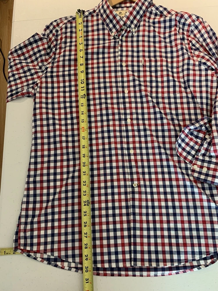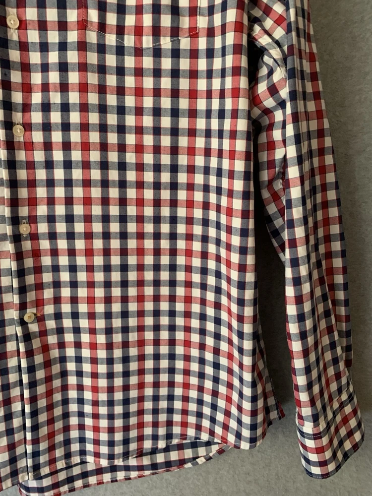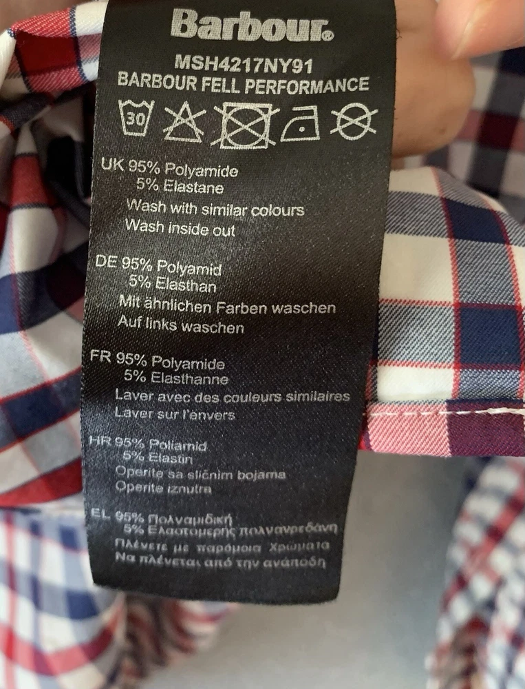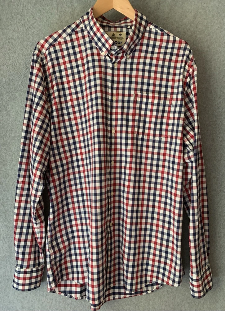 Barbour Mens Tailored Fit Shirt Button Down Plaid Sz L Blue Red Performance See pics for measurements.