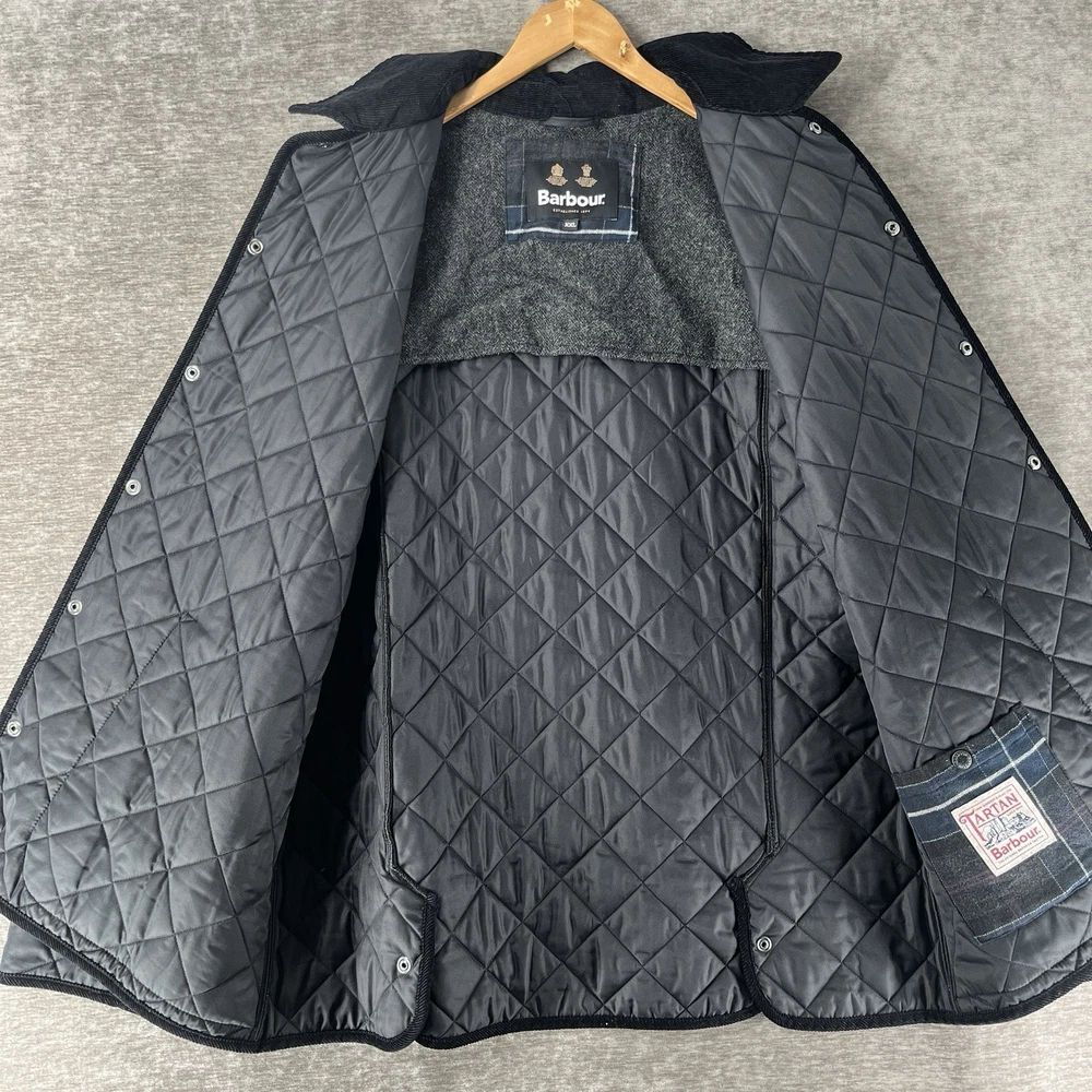 The Barbour Tartan Quilted Jacket in Solid Black is a stylish and versatile outerwear option for men. Made from polyester, this jacket features a corduroy collar and a mid-length cut, making it suitable for various occasions such as travel, parties, casual outings, formal events, workwear, and business meetings. The quilted design adds a touch of sophistication, while the jacket's lightweight construction and pockets make it practical for everyday use. With its classic design and outdoor theme, this jacket is a timeless addition to any man's wardrobe.