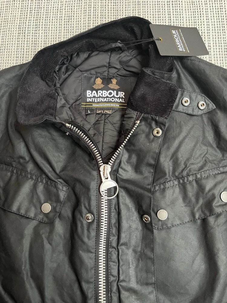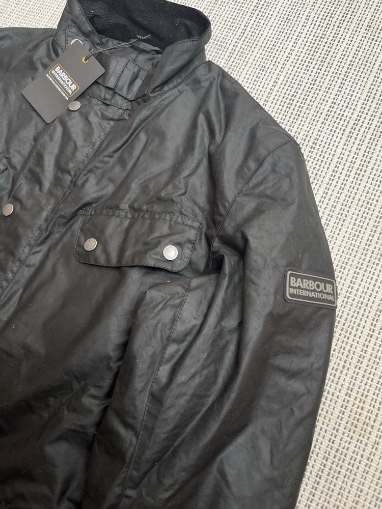 Brand new with tags. Size: Mens UK Large. Colour: Black. RRP: £269! The Barbour International Duke Wax Jacket boasts a self fabric overlay elbow patches, two lower bellow pockets and two chest welt pockets. This barn jacket offers a quilted lining and is finished with a branded silicone badge to the left arm. Product Highlights: - Designed in a timeless colourway - Multiple pockets on the front for ease of organization of your small essentials - Composition: Outer: 100% cotton (waxed). Inner: 100% polyamide - Care: Do not wash. Sponge clean only Don’t miss an absolute bargain, this is the cheapest anywhere, like for like!