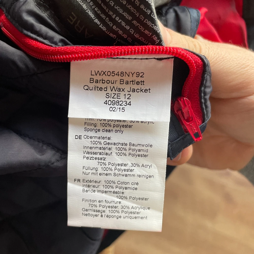 Barbour Womens Bartlett Quilted Wax Jacket The jacket has signs of wear, check please photos Size EU 38/ US 8/ UK 12 Measures: Shoulders 37 cm/ 14.5 in Pit to pit 51 cm/ 20 in Sleeve from shoulder 62 cm/ 24.4 in Length in back 65 cm/ 25.5 in All items are measured laying flat