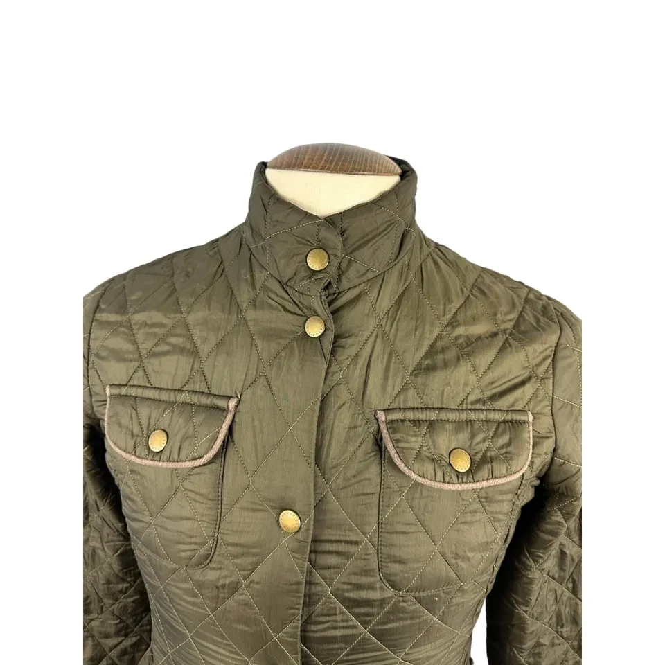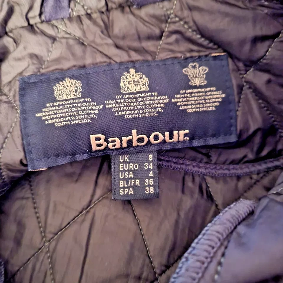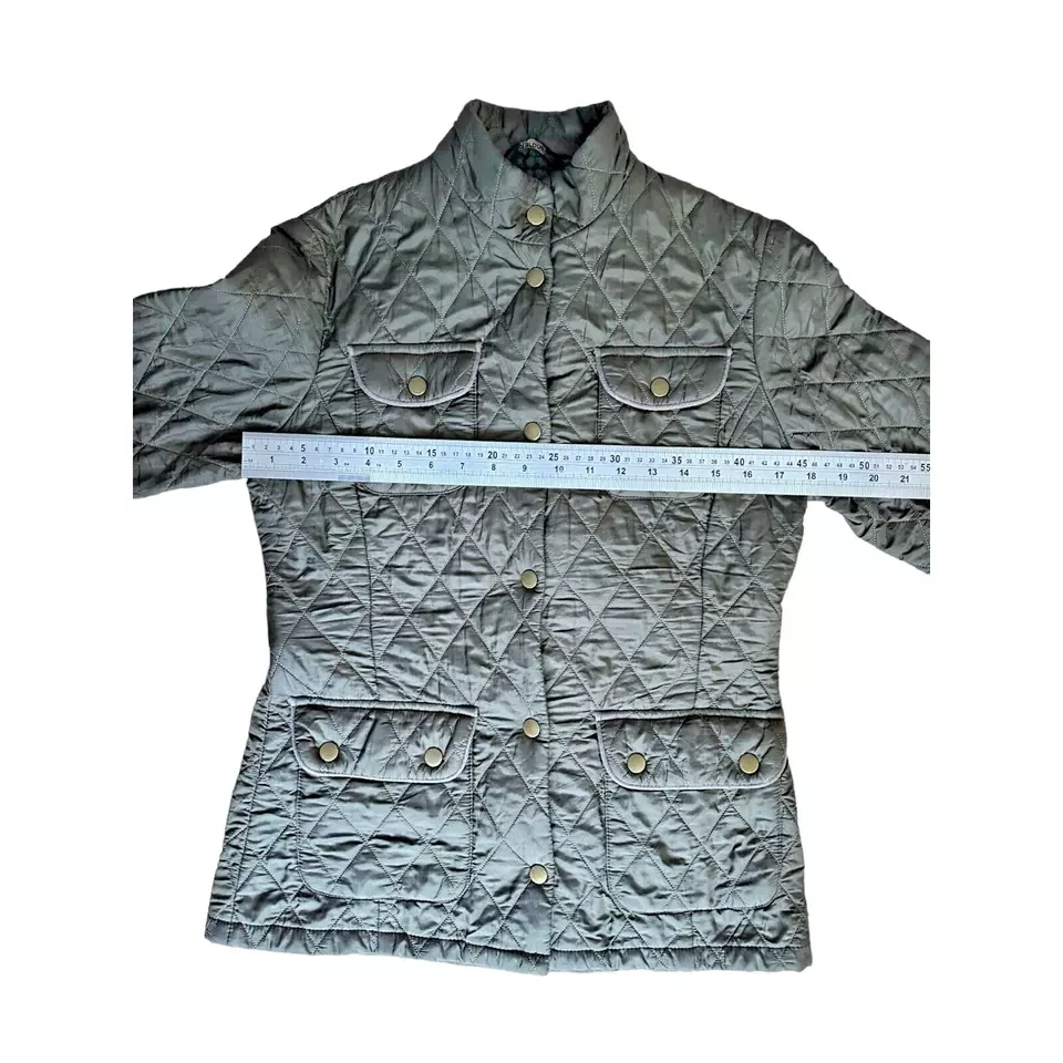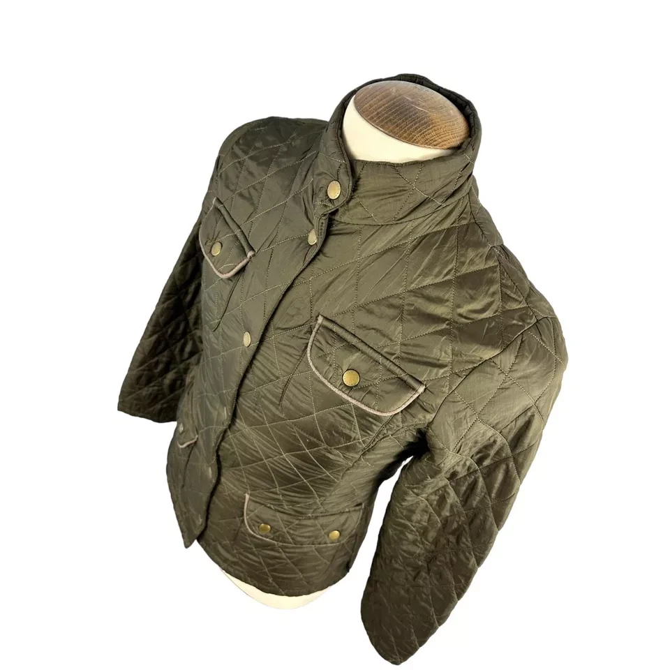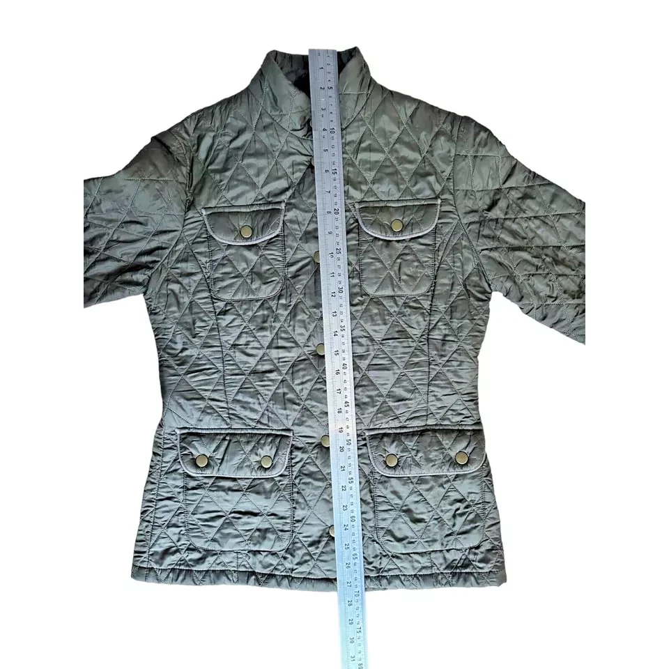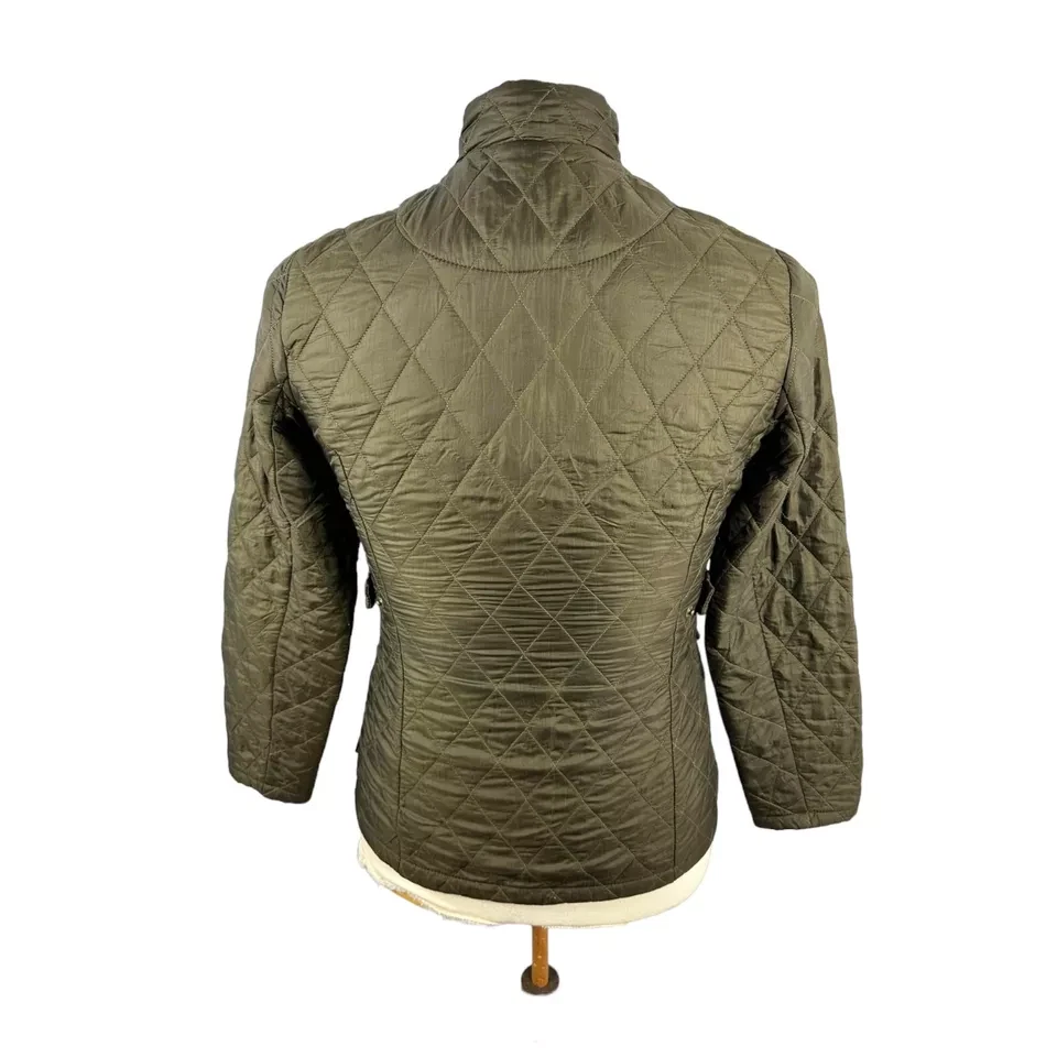 Item Barbour Women's Utility Flyweight Quilt Jacket Green UK 8 Designer Pockets Logo Small mark as pictured Measurements Size: UK 8 Pit to Pit: Approx 18" Collar to Hem: Approx 27" Condition: Good condition, small mark as pictured