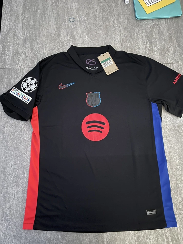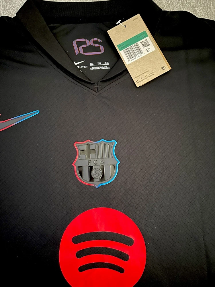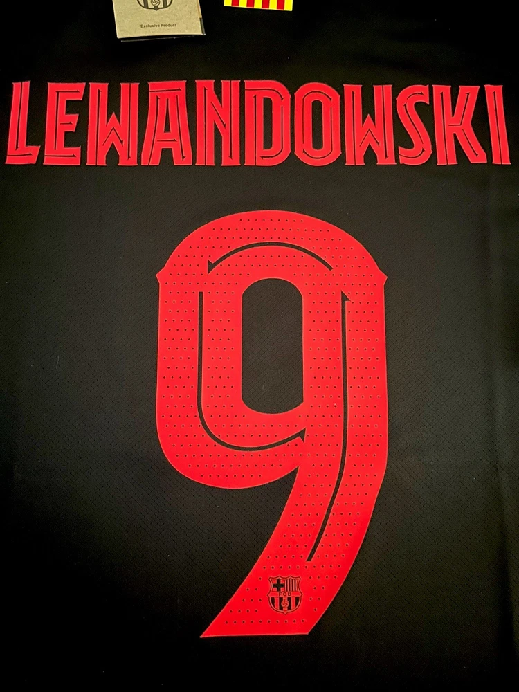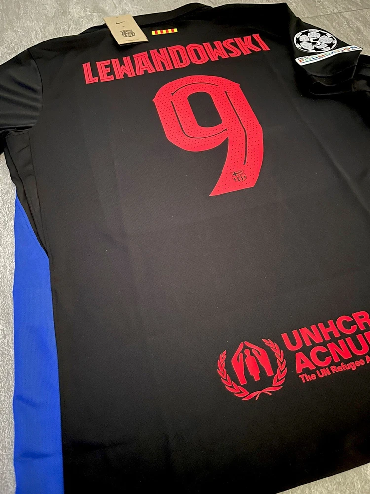 Show your support for FC Barcelona with this beautiful 24/25 Away jersey. Made with high quality materials, this jersey is perfect for any soccer fan. It features the team's iconic colors and logo, as well as your favorite player's ‘Lewandowski 9’ name and number. The jersey is available in size XLarge and is perfect for anyone who wants to show their love for the team. Whether you're watching the game at home or cheering on the team at the stadium, this jersey is a must-have for any true fan. This is a REPLICA jersey. Replica does NOT mean FAKE. A replica jersey is a fan-friendly, officially licensed jersey that is inspired by the jerseys worn by professional athletes. Replica jerseys are designed for comfort and everyday wear