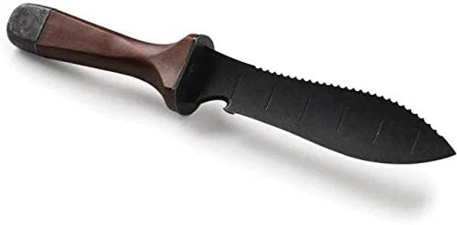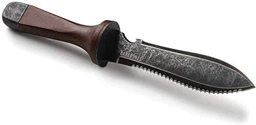 Barebones Living Hori Hori Ultimate Fixed Blade Knife Walnut Handle with Sheath New Hori Hori Ultimate 13.75" (34.93cm) overall. 6.75" (17.15cm) black stonewash finish 4Cr13MoV stainless blade. Walnut handle. Stainless pommel. Full tang. Heat treated double edge (straight and serrated) blade. Integrated twine cutter and bottle opener. Stainless flat pommel for hammering. Integrated twine cutter and bottle opener. Gray waxed canvas belt sheath with copper snap. Boxed with hanging tab. Features Stainless Steel: Our garden knife features a durable 4CR13 stainless steel double-edged blade with both straight and serrated edges, securely fastened through the tang for an optimum strength weeding tool Versatile Garden Tools: The ambidextrous use of walnut handle gardening hand tools with a flat pommel base are designed for left and right-handed users. The hori hori knife handle features a smooth, comfortable grip Advanced Yard Tools: Our concave blade has been designed with 1-inch markings to enhance your user experience and make measuring a breeze. The precise markings make the perfect weed-puller tool Garden Gadgets Tool Set: Need your gardening tool set to do more? Our outdoor knives are Japanese tools that double as a twine cutter and bottle opener- they would make great gardening gifts for women and men wanting to improve their gardening supplies Ultimate Planting Tools: The Hori Hori Ultimate tools are the perfect multi-purpose garden hand tools. With its flat pommel base, you can effortlessly pound in tent stakes and take on any challenge that comes your way Details Fast and Free Shipping You're already purchasing the item. Why pay additional for shipping, especially slow shipping? We get your order shipped out within 1-business day and delivered to your doorstep as quickly as possible. Competitive Pricing With our dynamic pricing model, our prices are always competitive. Our prices are some of the lowest that you will find on the internet. Rest assured that you're getting a good deal when purchasing with us. 30-day Money Back Guarantee We are committed to making sure that you leave this transaction satisfied. If you're unhappy with the product for any reason, you may return it back for your money-back or a replacement within 30 days. No questions asked!