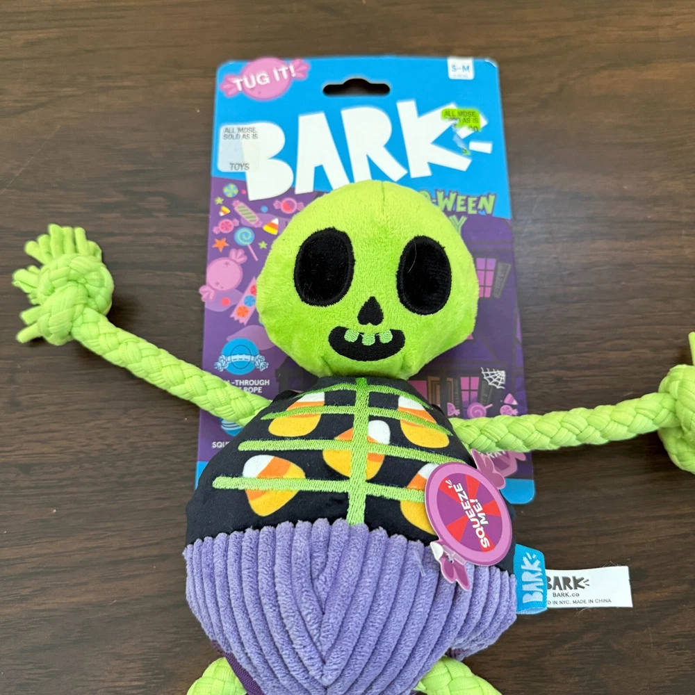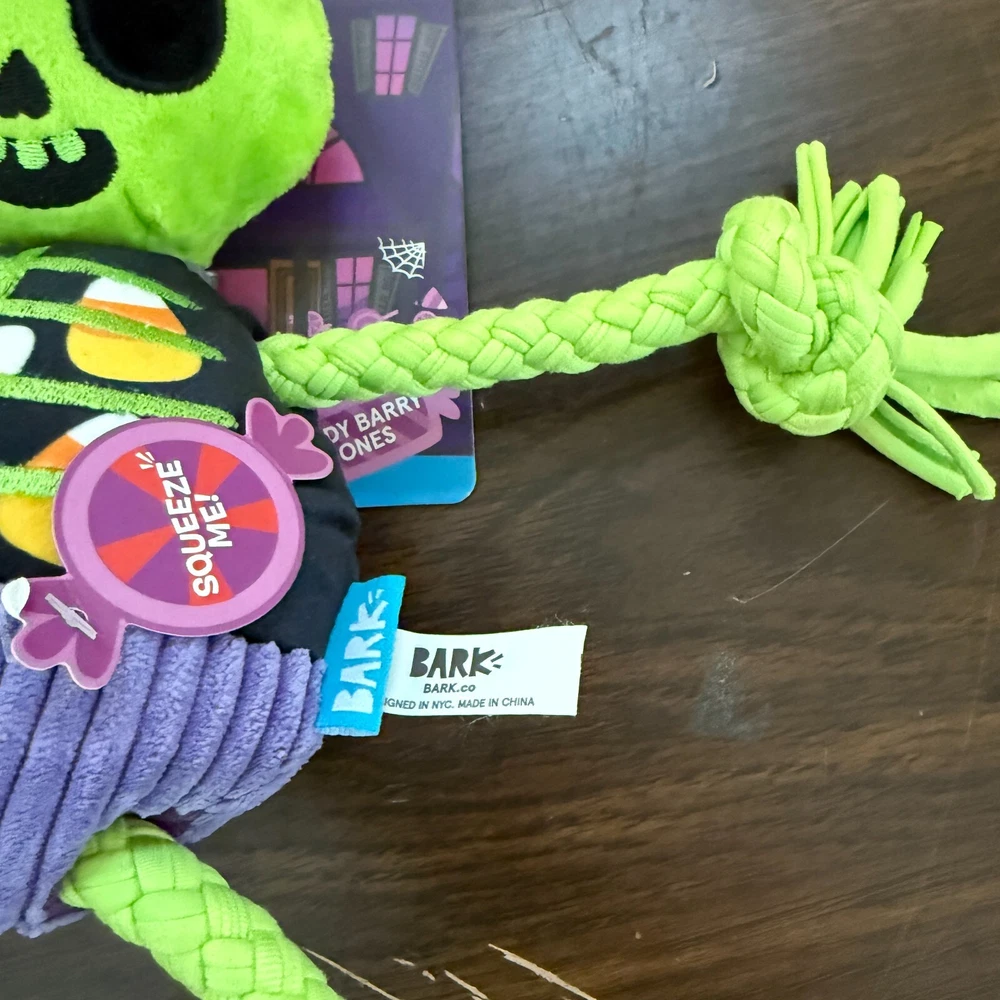 Bark Box S-M Dog Toy Plush Tug Squeak Halloween Barry Bones Skeleton Candy NEW
