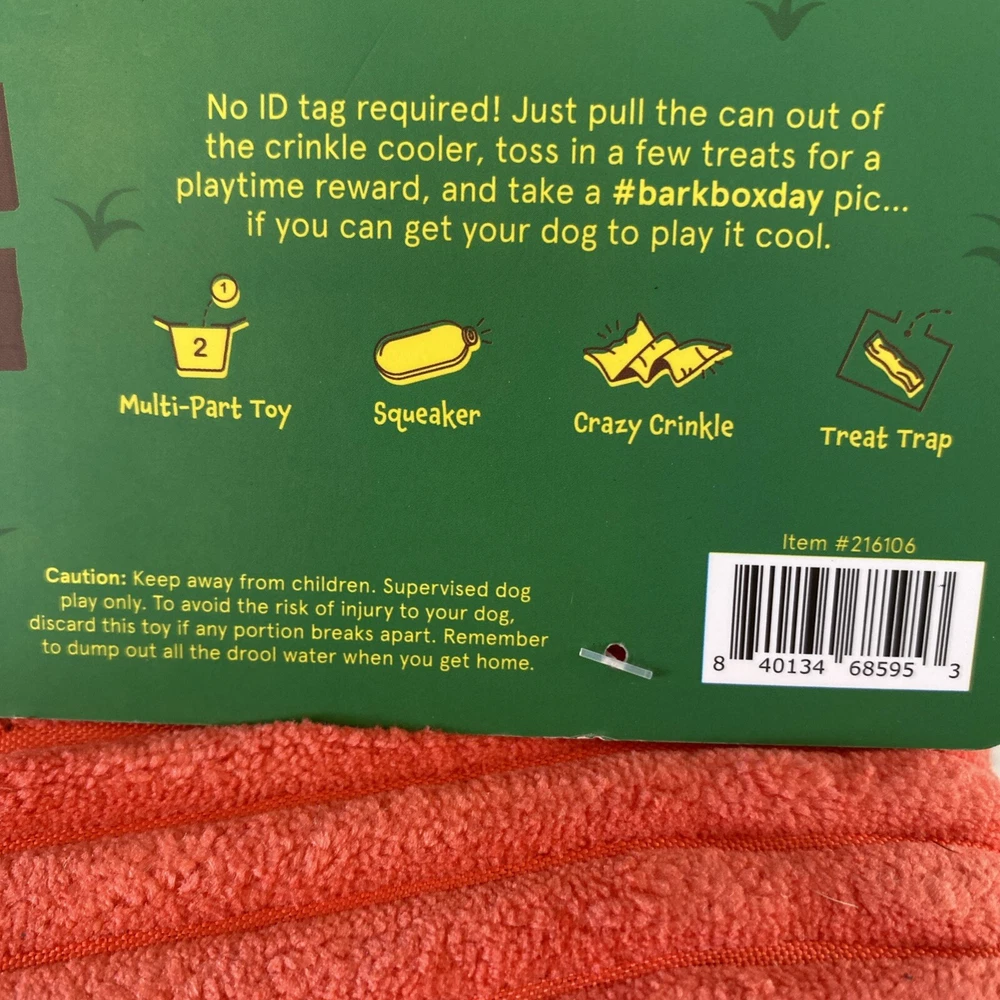 Bark Dog Toy Plush Cooler Beer Fetch A Cold One Squeak Crinkle Size M-L 20+ lb