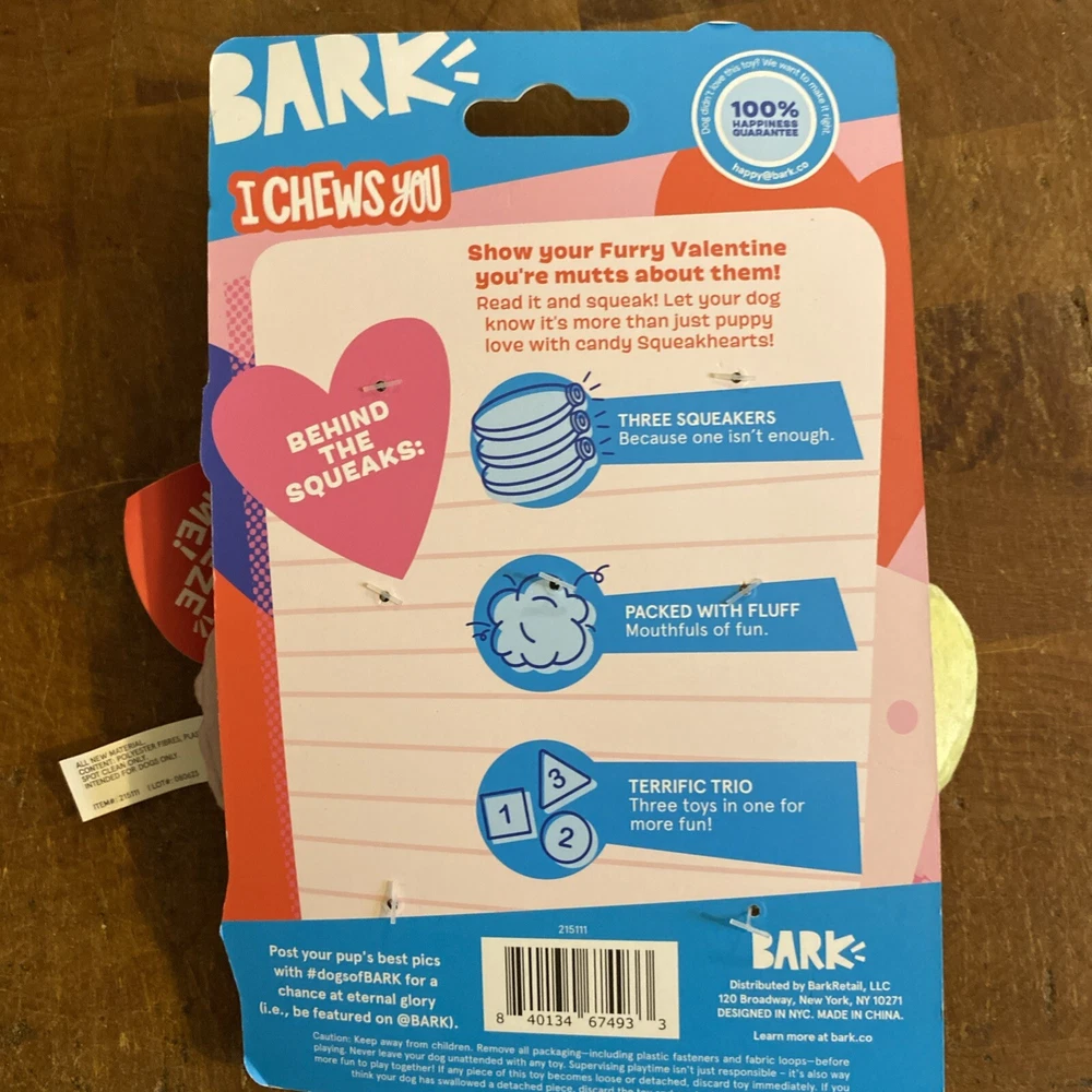 Bark Fetch It I Chews You 3 Squeaker Hearts Dog Toy XS/S 0-20lbs Valentine’s Day. New