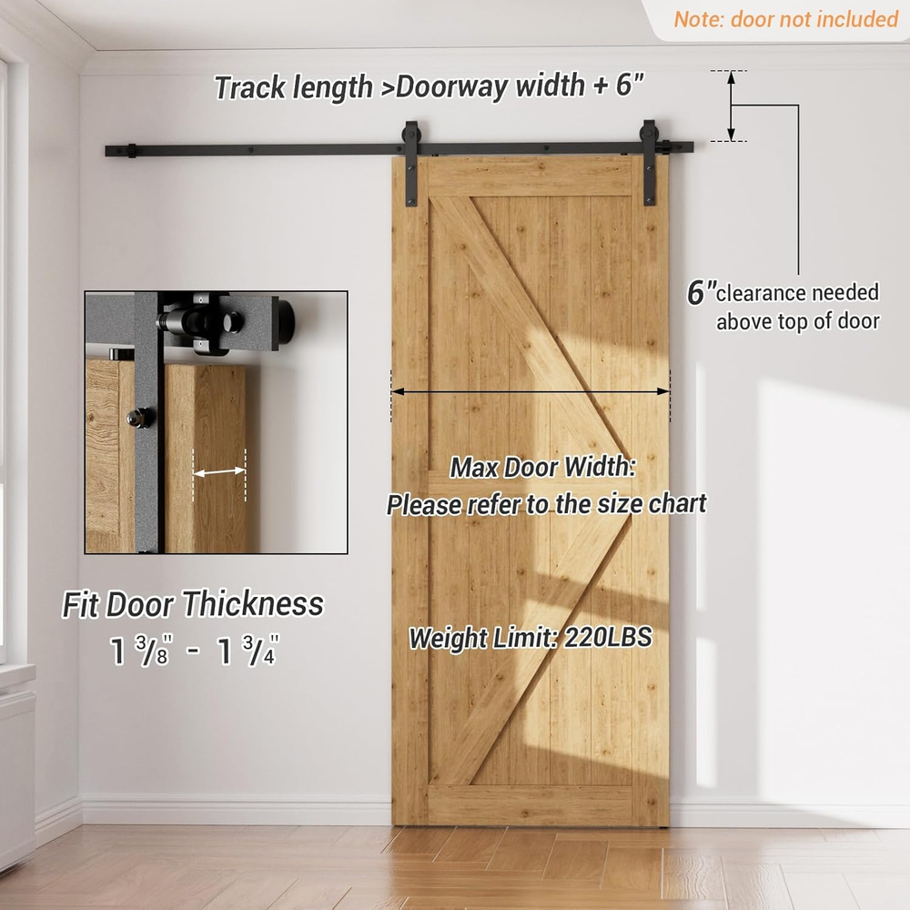 Store New Arrivals Add to Favorite View Feedback Contact Barn Door Hardware Kit 4FT Sliding Track Heavy Duty for Single Max 24'' Wide Door Panel Description Item model number L1T00SCJ-10-L Part Number L1T00SCJ-10-L Style Classic Assembly Required Yes Item Package Quantity 1 Color Black Brand CCJH Material Steel Country of Origin China Batteries Required? No Item Weight 6.4 Pounds Batteries Included? No Manufacturer YBT Is Discontinued By Manufacturer No Product Dimensions 1.38 x 24 x 6.7 inches Size 4FT/1.2M ❤【Sturdy&Durable】Made of heavy duty steel with premium nylon roller wheel. Surface: Frosted Black. The hardware kits are ideal for your home door DIY(laundry room, kitchen, cabinet, ect.) ❤ 【Door weight Capacity】: 4FT barn door hardware fits max. Door Width 24 inch; Fit Door panel thickness: 1 3/8"- 1 15/16"; Maximum loading capability is 330lb per door. ❤【Package Lists】: 2xRollers; 4ft Spliced Track (pre-drilled for easy installstion); 2XStoppers; 2XAnti-jump Disk; 1X Floor guide; 1XInstallation Manual and all other accessories. NO DOOR INCLUDED. ❤ 【Slide Smoothly&Quietly】 : Unique spring design of Door Stops can reduce the vibration for a quiet operation and extend the lifetime. Stop your door exactly at any position you want. ❤ 【Support】We'll try our best to assist you if any parts missing or any troubles ASAP. Product Description CCJH Barn Door Hardware Kit, Ideal Choice for Your Home Door DIY. CCJH is a professional manufacturer, with 10 years experience in designing and manufacturing barn door hardware, now we have 40 kinds hanger styles and provide 4FT-20FT track sizes(full size) to meet your different needs. All of our products comply with strict quality control, and advanced technology makes CCJH Sliding Barn Door Hardware more reliable, which let customers purchase with confidence. Wide Applicability: Ideal for indoor decoration in kitchen, bedroom, dressing room, laundry room, Utility room, Entertainment console, club, pub and so on. Questions You May Concerned 1.How to Choose Rail Size? Single Door Rail Length= 2 x Single Door Panel Width.(A little longer will be better) 2.When do you need a headboard? If the studs don't line up with the pre-drilled holes in the rail. Attach a header board into your studs first, and then the rail can attach anywhere into the header board. 3.How much space do I need above the doorway? A: 6" minimum clearance you’ll need from the top of your door to the ceiling (or crown molding) for this kit to operate. Package Includes(No Door) 4FT Track, Hangers: 2 PCS (1 PAIR), and all needed accessories. Note: Only hardware is for sale, door not included. If any parts missing, we'll send replacement from our US warehouse instantly. How to Ensure the Stability and Safety of Your Sliding Door? Adjustable Screw The roller screws can be adjusted freely in any size within the door thickness from 1.18" to 1.97". Unique Spring Door Stops The spring design door stopper can not only reduce sound during sliding your door, also extend the life of the kit. Anti-jumpers The little round discs won’t allow your door to be lifted off the rail. Floor Guide T shaped floor guide can prevent the door from swinging out or up against the baseboard.A groove needs to be pre-slotted on the bottom of the door panel. ABOUT US We offer the best prices around on high quality products. Our E-store includes media such as books, movies, music and games while offering electronics, toys, sporting apparel, clothing, tools, general home, garden items and more. SHIPPING We are always working hard to ensure your package arrives as soon as possible. Please understand that some factors like weather, high postal traffic, and the performance of shipping companies are outside of our control. We offer free shipping to the lower 48 states and ship within 2 business days of payment, usually sooner. We do not accept P.O. Boxes. Please provide a physical address. RETURNS We offer a 30-Day Return Policy on items which you are not completely satisfied with. You have the option for a full-refund or an exchange of the item. No returns are available on items shipped outside of the USA. PAYMENT We accept PayPal. CONTACT US This page content is yet to come Please ad us to your favorite seller and visit again later Thank You CUSTOMER SATISFACTION We try our very best to make sure every customer is completely satisfied. If there's a problem, message us! We're happy to help.