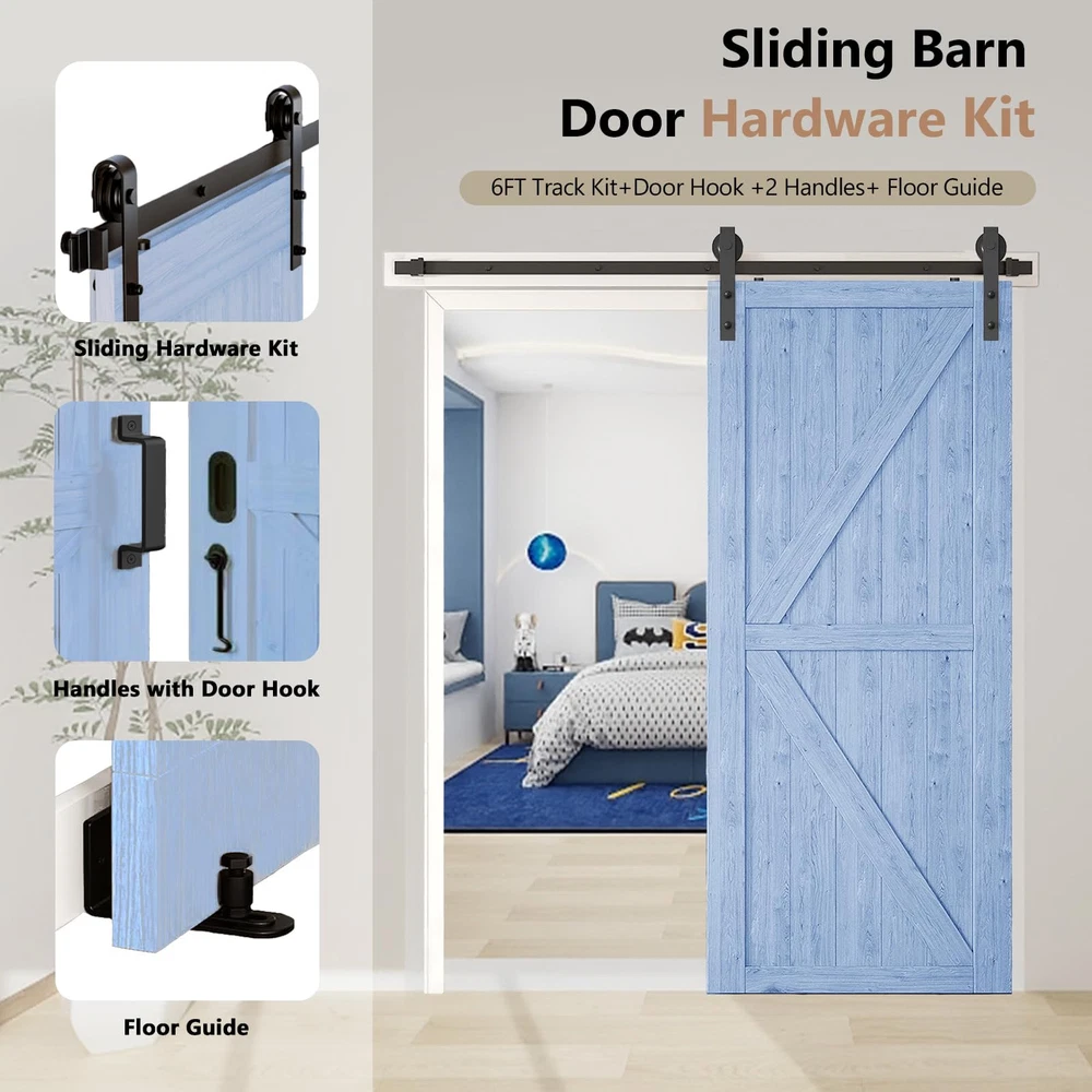 ▶【Heavy Sturdy and Reliable Hardware kit】:Our barn door hardware kit is built to last, featuring high strength industrial grade tracks and J pulleys that can easily support loads of up to 380 lbs wooden door. It is suitable for doors panels with a thickness ranging from 1 3/8 - 1 3/4 inches, ensuring a strong and secure installation. We offer 5ft, 6ft, 6.6ft 9ft, 8ft soft close barn door hardware kit for single barn door and 10ft 12ft double slider track for double barn door hardware kit. ▶【Smooth and Quiet Operation Sliding Door Track kit】: Two anti-jump disks and an up-side-down T-shaped guide, our barn door hardware provides stability and prevents swinging as the door moves along the rail. The floor-mounted installation adds an extra level of stability to the sliding door system, ensuring that your door glides smoothly along the track without any wobbling or jumping. Enjoy a smooth and quiet sliding experience, adding a touch of modern convenience to your space. ▶【Versatile Barn Door Kit Application】: Whether you have cement walls or wood walls, our barn door hardware kit is designed to accommodate both. Its rustic style makes it a perfect fit for various indoor and outdoor settings, including kitchen, bedroom, shower room,laundry,dressing room, storehouse,clubs, pubs, while its waterproof and rustproof construction also makes it suitable for barns, garages, stables, and more. ▶【Complete Sliding Barn Door Hardware kit】: With heavy duty rails included and all the necessary in the Barn Door Accessories Pack for easily install the track on the floor allowing for smooth and effortless movement of your barn door. It consists floor-mounted design rails, 6 wall spacers, 2 hangers and handles, 1 Adjustable rolling door guide,1 T-shape door guide, 2 door stopper, 1 hook, 2 rubber ends 1 hex key. You'll have everything you need to set up your barn door system (door not included) ▶【Ideal for Multiple Rooms】: Embrace the modern twist on the classic barn door design and enjoy the space-saving benefits it offers. This versatile kit allows you to open up multiple rooms without any hassle. Perfectly suited for hallway, living rooms, bedrooms, storage, bathroom and study room even farmhouse -make the right choice for your house and elevate your living spaces. Its sleek and modern design seamlessly blends with any decor style. Even use for hanging door.