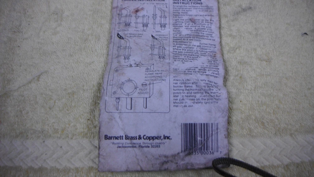 Barnett Brass & Copper ,Inc. 36" THERMOCOUPLE Universal Replacement