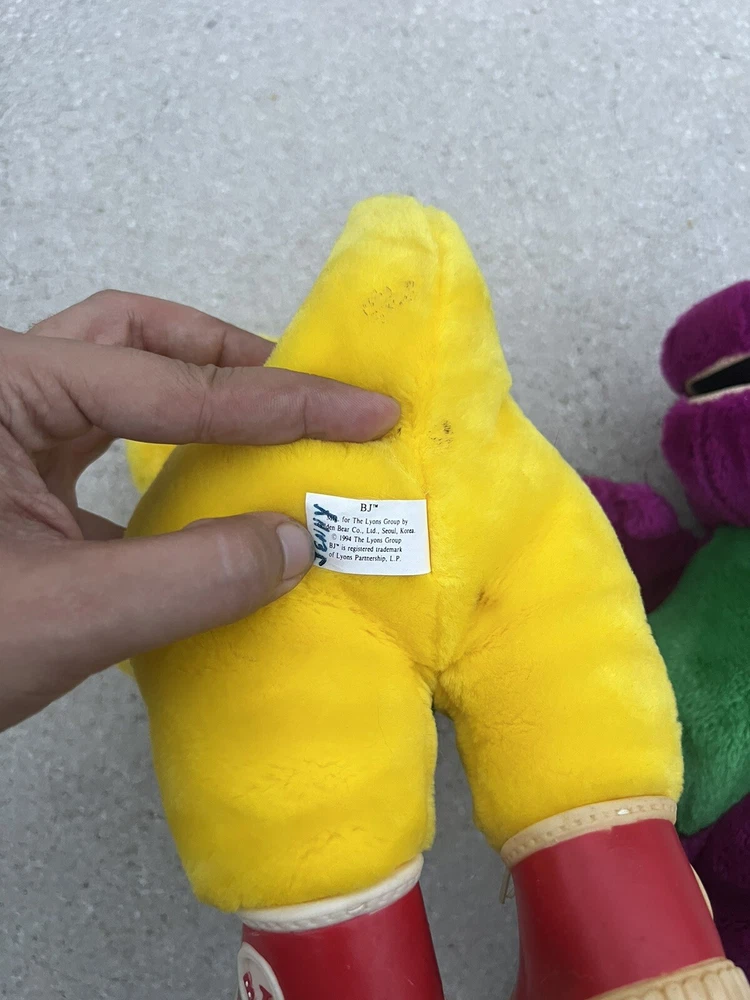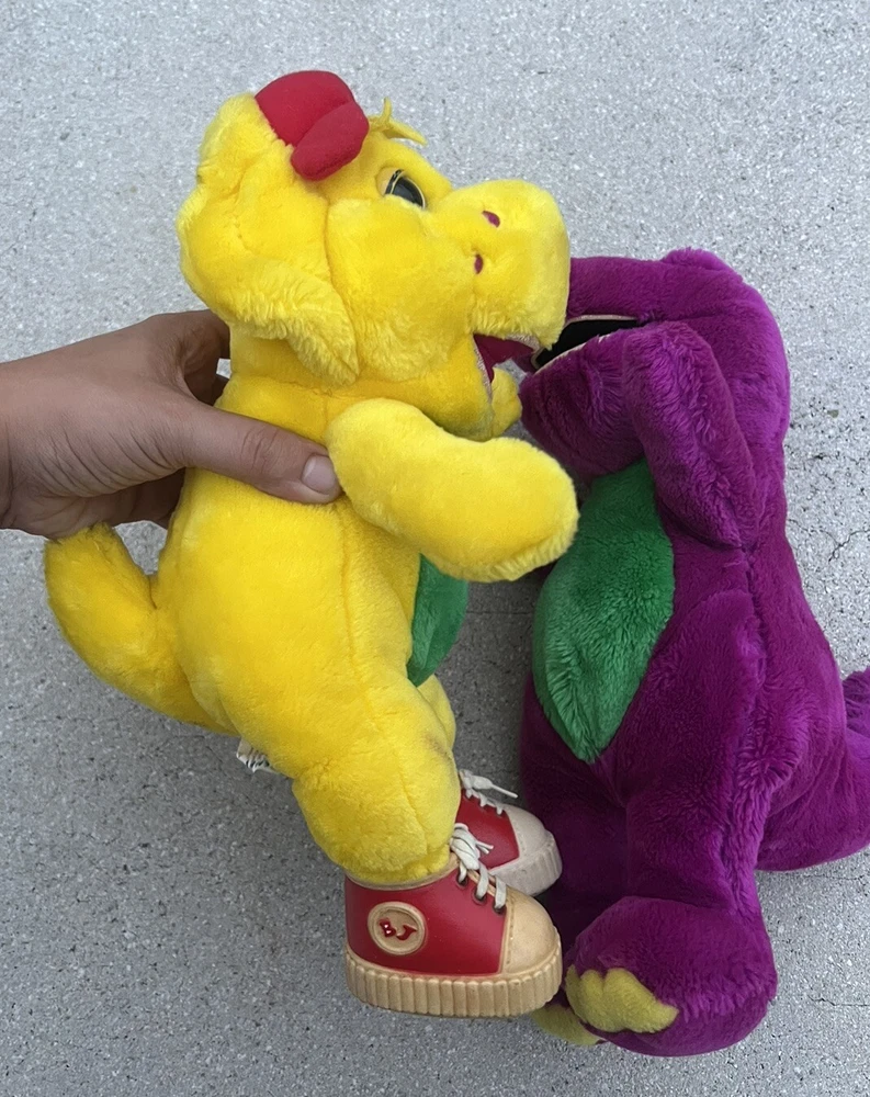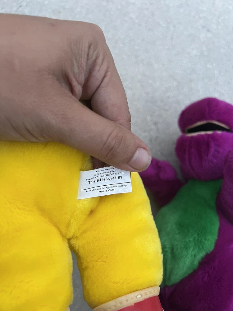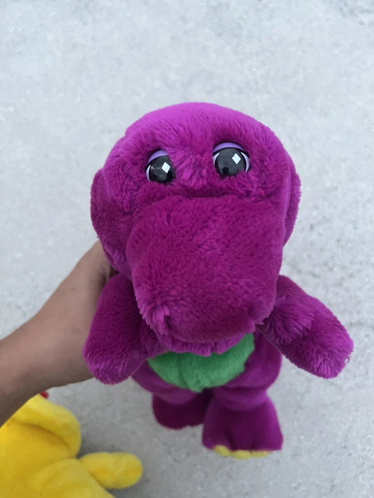 This vintage plush toy is a must-have for collectors of stuffed animals. Made by Fisher-Price in 1992, this Barney & BJ plush toy is a great addition to any collection. Measuring at 13 inches, this medium-sized plush toy is perfect for playtime or display. The toy was manufactured in Indonesia and has a slight blemish, making it a unique and rare find. This plush toy is perfect for those who love vintage toys and want to add a special piece to their collection. Don't miss out on the opportunity to own this classic piece of nostalgia.