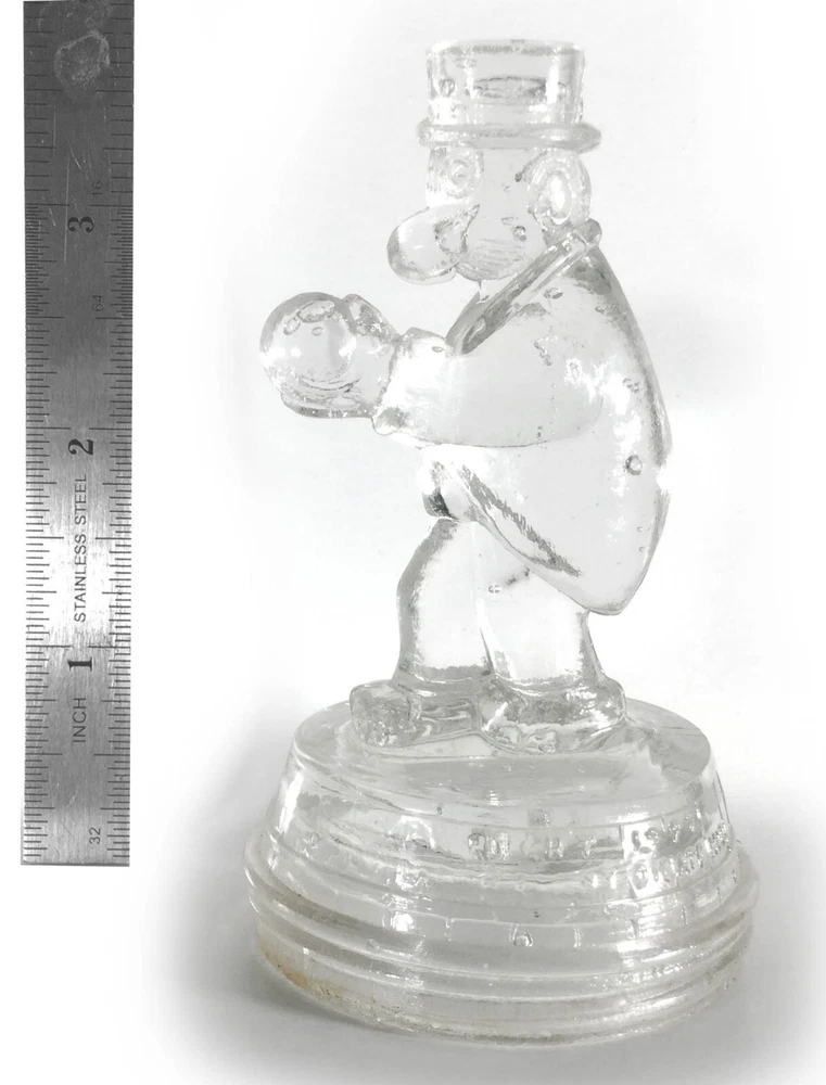 PLEASE READ INFORMATION & CAREFULLY REVIEW ALL PHOTOS ! Authentic, Vintage Excellent Condition "King Features Barney Google" Figural Clear Glass Candy Container (*Missing Bottom) (Circa 1920's) ! * There Doesn't Appear To Be Any Breaks, Cracks Or Crazing ! * There Is Some Very Light Scratches, Tarnish & Wear ! Sold "As- Is" ! Measures Approximately: 3 1/2" H x 2" Wide This Item Has Been Used And May Show Some Minor Wear ! We Did Not Perform Any Cleaning Or Restoration And The Item Is Sold "As-Is" ! ( please carefully review all photos ) Please Take A Look At My Other Listings For Many Rare, NEW & USED DVD's & Blu-rays Including Vintage Collectibles, Toys & Hot Wheels ! I strive to ship very quickly, usually within 24 hours after payment is received (check my feedback). You will also automatically receive a tracking number for your package ! I package very carefully and use Bubble, Padded, Poly or Kraft Paper envelopes and will ship USPS Media Mail for most DVD' s & Blu-Rays. * Please Contact Me First Before Purchasing For Additional Cost For Extra Padding, Cardboard Protection And/ Or Shipping In A Box ! Sorry, but I do not ship internationally and ask that you please feel free to contact me with any questions!