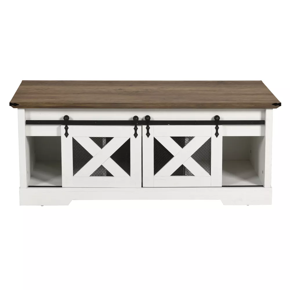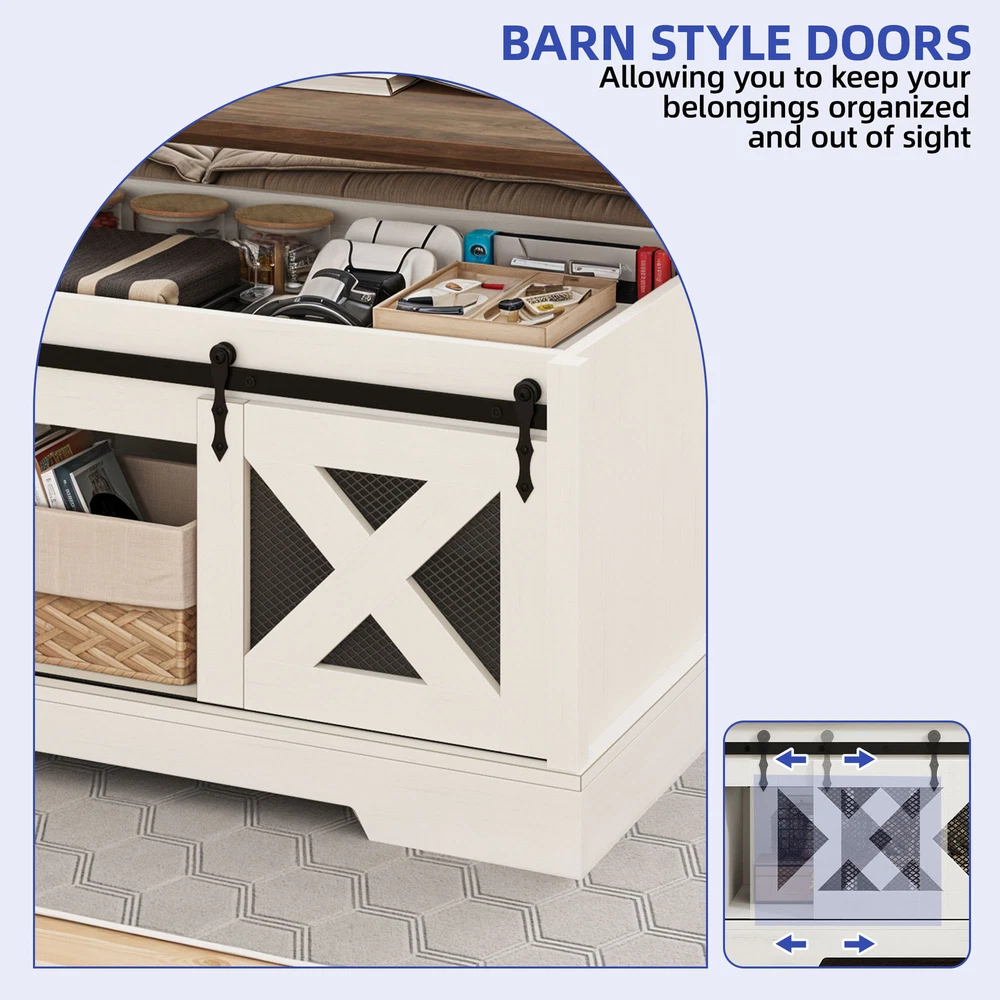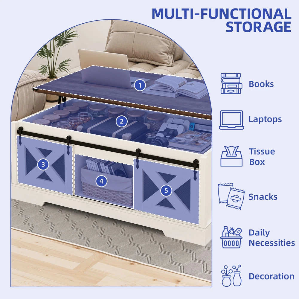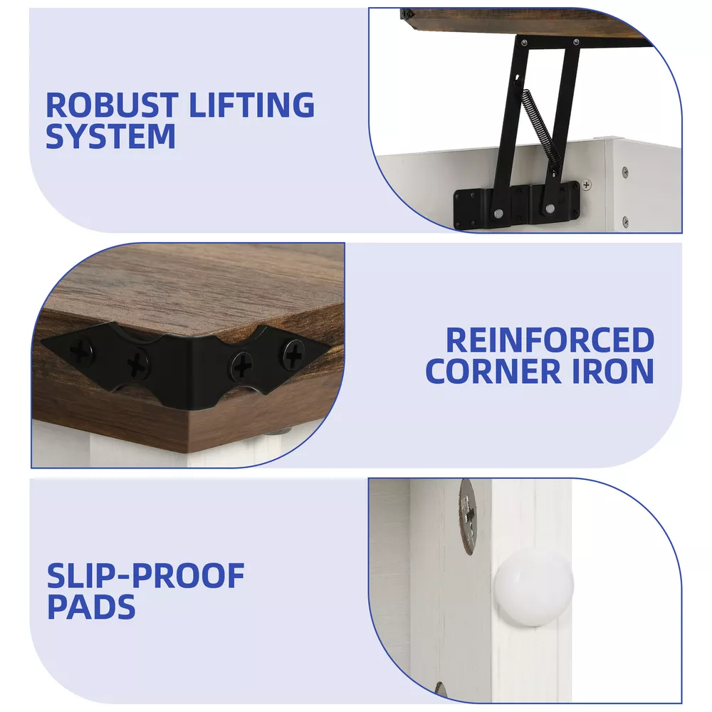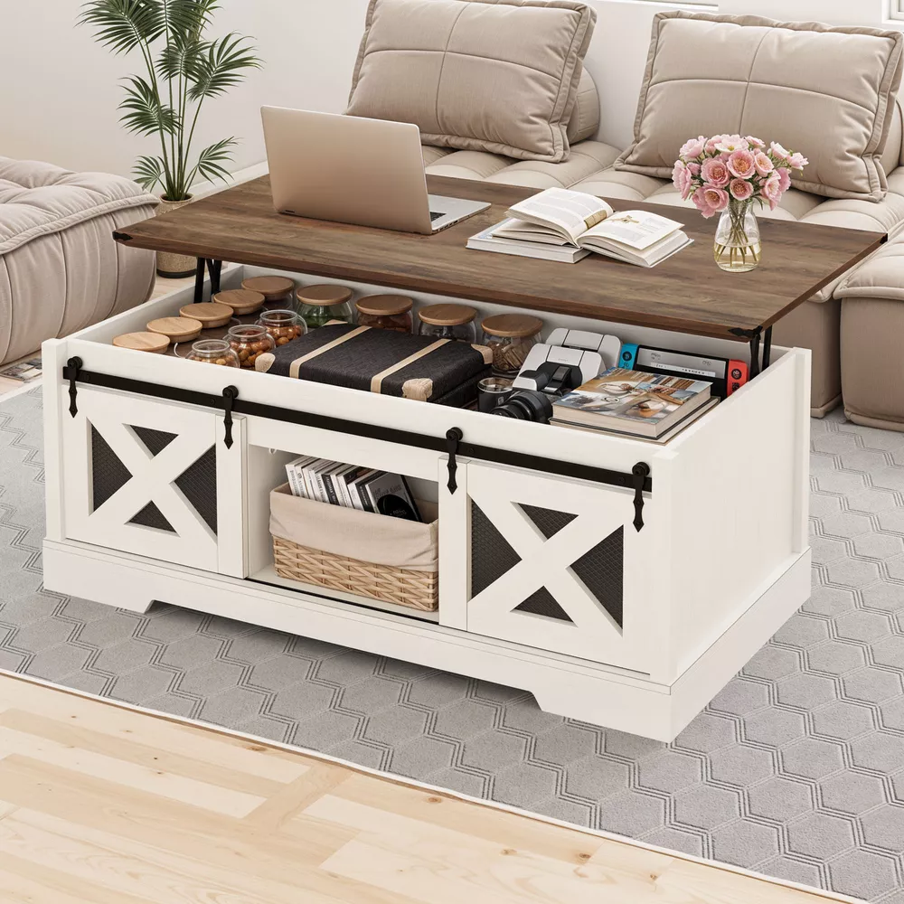 Barnhouse Lift Top Coffee Table Mesh Sliding Door & Hidden Storage for Living Room Product Description NOTE: Professional Installation Would Be Highly Recommended. Description : 1. Color: White & Brown 2. Materials: P2-Certified Particle Board, Metal, MDF/Chipboard 3. Room Type: Living Room, Family Room, Den, Home Office/Study, Entertainment Area, Sunroom 4. Feature: Lift Top Table, Multifunctional Storage, Barn Style Door, Iron Protective Corner, Protective Foot Pads, Robust Lifting System, Hidden & Open Compartment Underneath, Spacious Tabletop, Waterproof, Scratchproof, Easy to Assemble, Easy to Clean. 5. Weight Capacity: 110 lbs. Features: 1. Versatile Storage Table: Elevate your living space with a lift top coffee table that not only provides a flat surface for your everyday needs but also includes ample hidden storage compartments . Ideal for storing books, electronic devices, and other essentials, its innovative design allows for easy access while maintaining a tidy and stylish appearance. 2. Elegant Barn Doors: This storage unit features stylish barn-style doors that slide smoothly to offer easy access while keeping contents dust-free and neatly organized. The aesthetic appeal of the barn doors adds a rustic charm to your decor , making it a perfect blend of functionality and style for living rooms or bedrooms. 3. Durable Construction Details: The storage unit is built with a robust lifting system that ensures easy and safe operation of the lid, while reinforced corner iron adds extra durability and longevity to the structure. Additionally, slip-proof pads on the base protect your floors from scratches and keep the unit stable, enhancing both usability and safety. 4. Rustic Storage Bench: The bench is crafted with waterproof and scratchproof materials , making it highly durable and suitable for everyday use in busy areas like living rooms or entryways . Protective foot pads ensure the flooring remains unscathed, adding to its practicality and suitability for various home settings. Dimensions: 1. Overall Dimensions: 47.2"L x 21.7"W x 24.7"H Package Included: 1. 1 x Coffee Table 2. 1 x Accessory Kit 3. 1 x Instruction Manual Note: 1. During assembly, do not tighten screws until all holes are aligned. 2. Confirm the appropriate furniture size for your needs prior to purchase. 3. There may be a slight color discrepancy between the product as seen on your monitor versus in real life. 4. Do not expose the product to extreme sunlight. To extend product lifetime, cover item when not in use. 5. Contact us immediately if any components are missing or damaged upon arrival. Our customer service team will resolve your issue right away. Shipping 1. Normally the item will be dispatched within 1 business day if payment is cleared before 12 pm PST. 2. Please verify the correct shipping address in your PayPal account before making the payment. We only dispatch the item to the address that is sent to us at the time of checkout. 3. We don't ship to Hawaii, Alaska, Puerto Rico, APO/FPO/PO Boxes. 4. We don't provide local pick-up service. 5. Normally we will use USPS, UPS, FedEx & LTL to dispatch items. Payment 1. We accept PayPal and credit card. 2. We will ship to the confirmed Paypal shipping address that is provided with the payment only. Return 1. 30 days Money Back Guarantee. 2. Please contact our customer service to receive a RMA form first if want to return the item. 3. All returned items MUST in new condition with the original package. Contact If has any problem, please contact us by sending an ebay message. Our customer service will resolve the problem as soon as possible. On Feb 17, 2025 at 23:21:43 PST, seller added the following information: