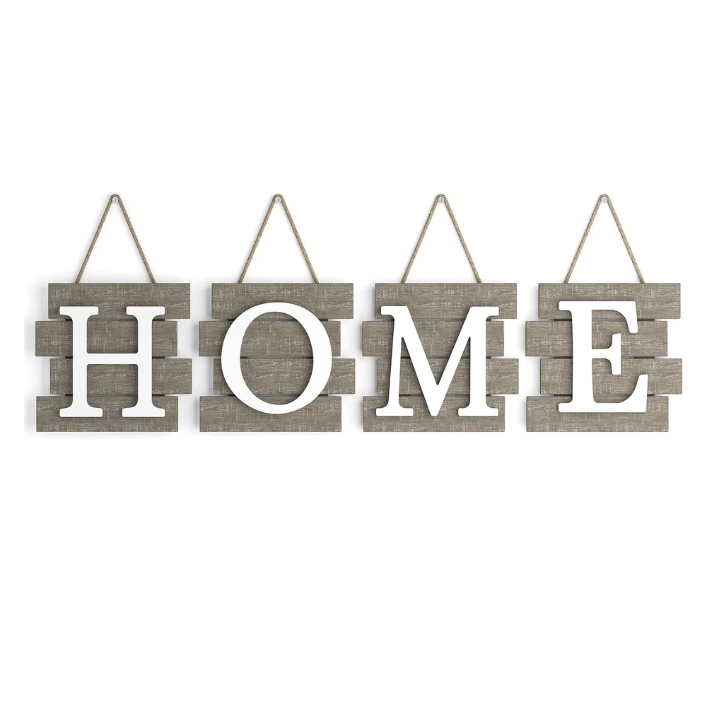 Barnyard Designs Home Tile Sign Wall Decor, Rustic Primitive Country Decorative Wall Art for Home and Kitchen 32" x 8” (HOME Brown) Product Details Color: HOME Brown Brand: Barnyard Designs MPN: FM17L0458 UPC: 748388106074 EAN: 0748388106074 Product Dimensions: 32 x 8 x 0.2 inches Item Weight: 3.52 pounds Manufacturer: Barnyard Designs Country of Origin: China Item model number: FM17L0458 Is Discontinued By Manufacturer: No Finish types: Painted Number of pieces: 1 Batteries required: No Decorative home sign - Welcome people into your home with a lovely warm feel with this wooden HOME tile wall sign. Wall decor that makes a beautiful adornment for any room. Rustic wall decor - This wall art sign is the perfect piece to complement the country, primitive decor theme you have in mind with its rustic white letters and unfinished wood finish. Ready to hang - Pre-installed hanging hooks and strings makes this wall house decoration so easy to mount. A shabby chic home decor item for that farmhouse look. Home decor accent - An ideal housewarming gift for your dear ones, or a reminder of the blessing of your own home. Great wall sign for your kitchen, living or dining room. Dimensions - The overall size of this wooden wall sign measures 32" x 8" x 1.25. Each tile measures 8" x 8" x 1.25. Letters can be hung individually.