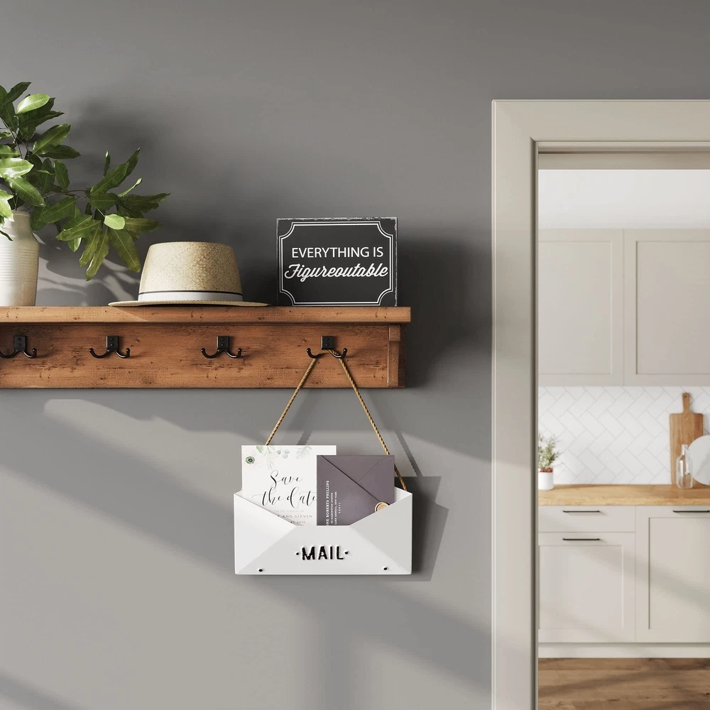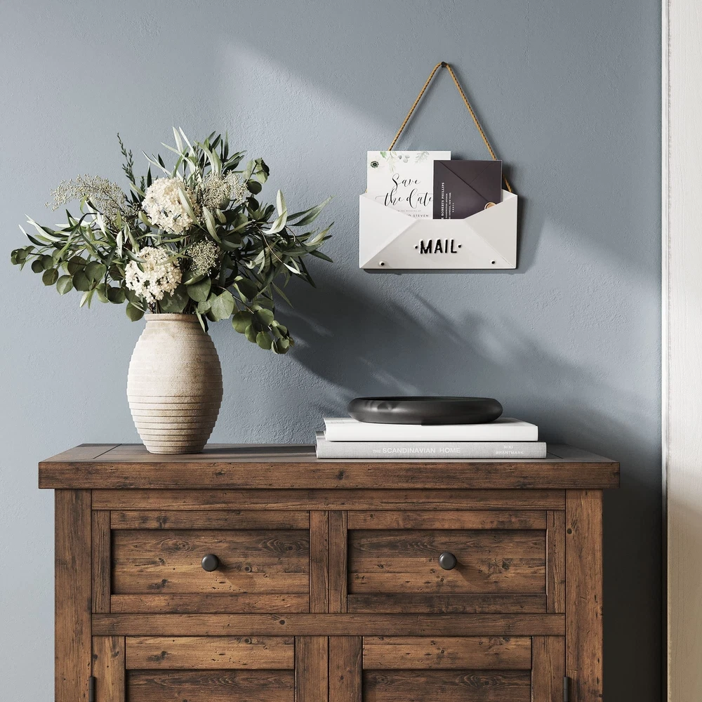 Barnyard Designs Wall Envelope Mail Sign Decor Rustic Vintage Decorative Mail Holder for Home and Office Decor 12” x 8.25” Product Details Manufacturer: Barnyard Designs Brand: Barnyard Designs Item Weight: 13.1 ounces Product Dimensions: 12 x 5 x 8.25 inches Item model number: FM18G0327 Is Discontinued By Manufacturer: No Color: White Shape: Rectangular Material Type: Metal & Rope Number of Items: 1 Size: One size Manufacturer Part Number: FM18G0327 Date First Available: October 30, 2018 Envelope mail decor - Use this cute mail sign as a decorative wall accent and as a little organizer to store your important small receipts, mail, and other tiny papers. Rustic vintage mail sign - This mail holder sign is made from enamel. Ready to add a rustic touch and decorate your home in some vintage style decor. Wall hanging decoration - This sign comes with a hemp rope for easy hanging. Great decor for your home, office, kitchen or entryway. Makes a great gift - A wonderful gift for family and friends. It will make an adorable wall envelope decoration in any home. Dimensions - This envelope sign measures 12 x 8.25 x .5.