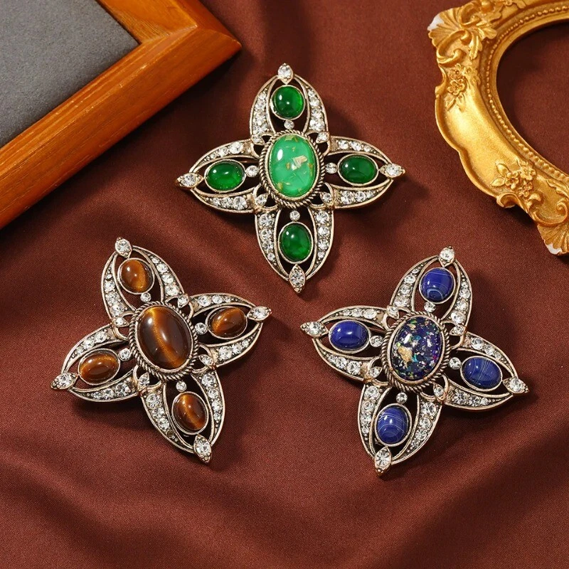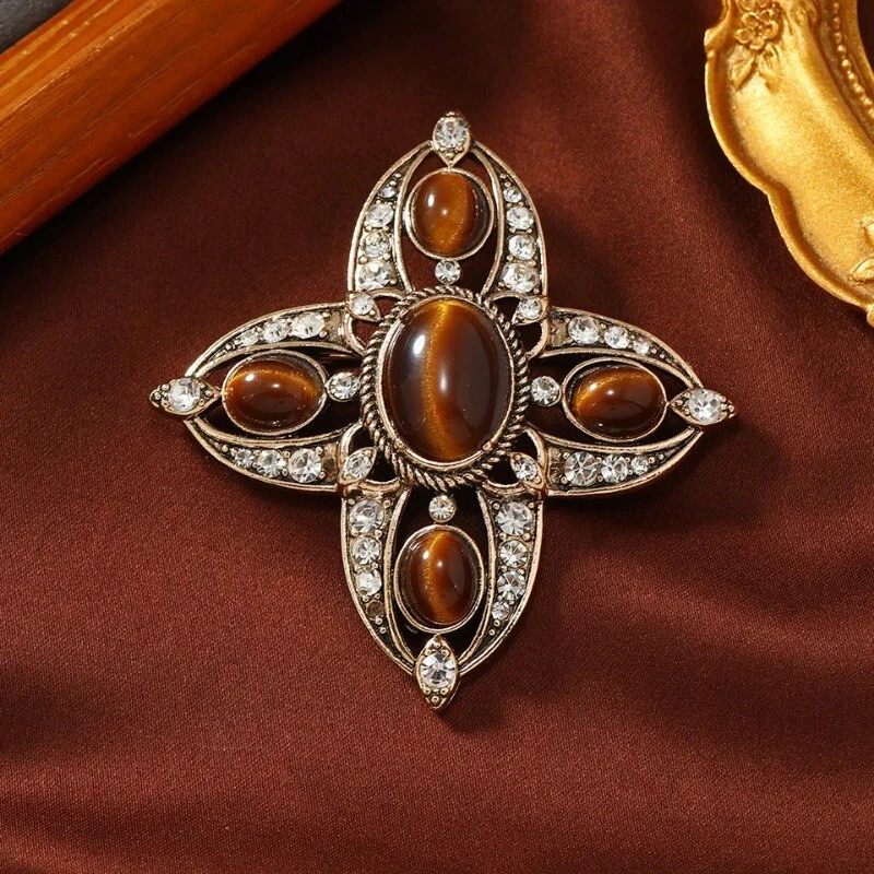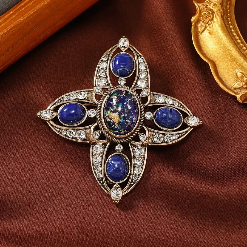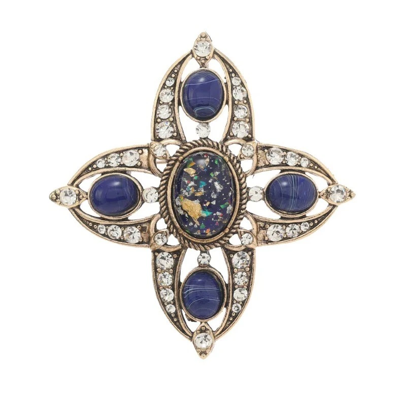 Baroque Vintage Hollow Design Cross Brooch Spring and Autumn Fashion Pin
