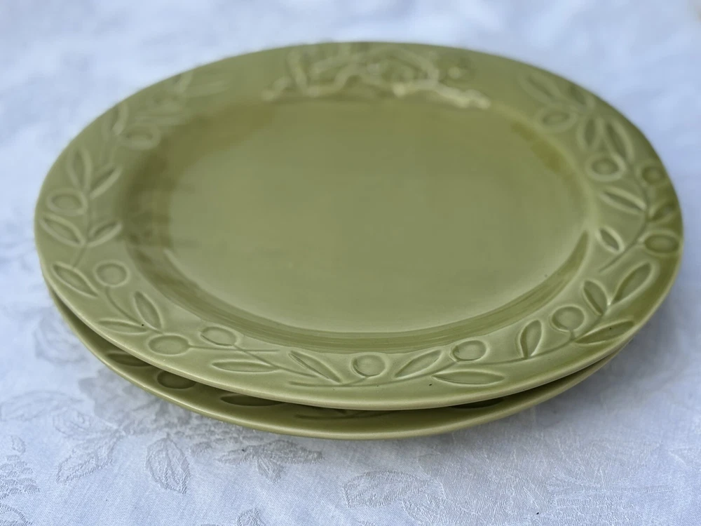Add a touch of country charm to your dining table with these Barrarte Brand Salad Plates. The oval-shaped plates feature a decorative raised pattern and are made of glossy ceramic material. The plates are handmade and designed with a farmhouse olive branch ri pattern, making them perfect for all occasions. These two-piece plates were manufactured in Portugal in 2001 and are licensed reproductions. They are suitable for teens and adults and require hand wash only for care instructions. The plates are 8 inches in length and 1 1/2 inches in height, with an item weight of 2.8 lbs. They are perfect for serving salads and other dishes and are sure to add a touch of kitschy style to your dining experience. Returns accepted within 30 days; buyer pays return shipping