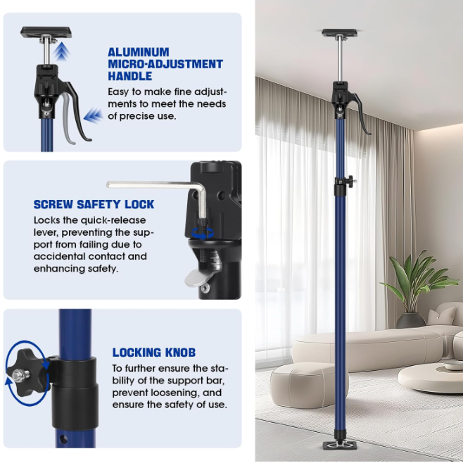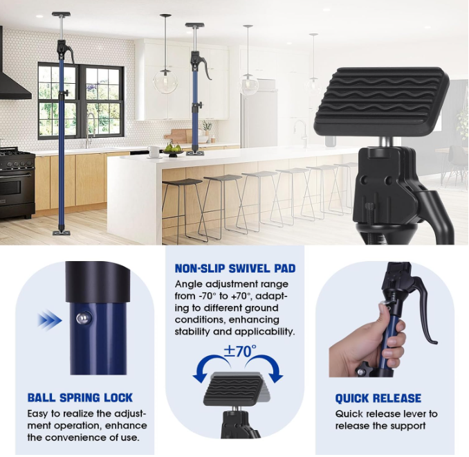Barras de soporte para gabinetes (15-23 pulgadas): Capacidad de carga de 154LB, incluye almohadillas antideslizantes, set de 2 piezas. 馃敼 DISE脩O DEL PRODUCTO : . El gato para paneles de yeso est谩 fabricado con materiales resistentes, con pasadores con resorte, un tubo interior y una perilla de bloqueo que garantizan una durabilidad y seguridad excepcionales. . El mango ergon贸mico de la bomba simplifica su uso. 馃敼 M脷LTIPLES USOS : . El gato para gabinetes ofrece una amplia gama de aplicaciones, ideal tanto para proyectos de bricolaje como para las necesidades de trabajadores de la construcci贸n y personal de mantenimiento. . Puede funcionar eficazmente como gato para gabinetes, gato para paneles de yeso, soporte para molduras de corona y m谩s. 馃敼 ESTABILIDAD : . La base del poste de soporte es ancha y plana, lo que proporciona una amplia superficie de contacto con el suelo. . Adem谩s, incorpora acolchado antideslizante y revestimientos en las superficies de contacto para mejorar la fricci贸n y evitar deslizamientos. 馃敼 ALTURA Y 脕NGULO AJUSTABLES : . La barra de soporte se expande de 40 a 60 cm (15 a 23 pulgadas) con una capacidad de peso de 70 kg (154 lb). . La inclinaci贸n m谩xima no debe superar los 45 grados. . Se ajusta f谩cil y r谩pidamente a diferentes alturas y 谩ngulos, lo que la hace adecuada para diversas aplicaciones. 馃敼 MANOS LIBRES : . El poste de soporte r谩pido ofrece una soluci贸n pr谩ctica para asegurar los materiales de construcci贸n durante la instalaci贸n de un solo gabinete, proporcionando una ayuda adicional eficaz. Terms of Sale and Feedback: Feedback is extremely important to us and eBay If you are satisfied with our transaction, please take a moment to leave Positive Feedback. YOUR Satisfaction is our #1 Priority! If there are any issues, PLEASE contact us BEFORE leaving a neutral or negative rating so that we may resolve any concerns. We PROMISE we can make you happy if you give us a fair chance.