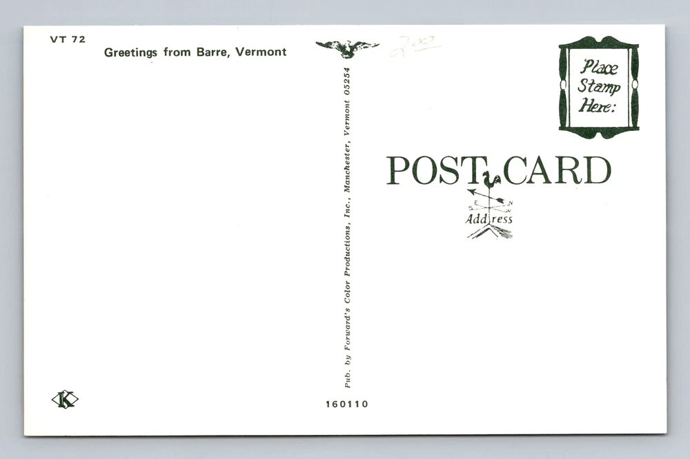 City: Barre Postage Condition: Unposted Material: Paper Region: Vermont Unit of Sale: Single Unit Size: Standard (5.5 x 3.5 in) Country/Region of Manufacture: Unknown Theme: Cities & Towns Country: USA Subject: Cities & Towns Type: Printed (Lithograph) Era: Vintage Original/Licensed Reprint: Original