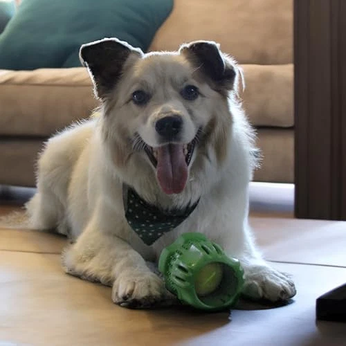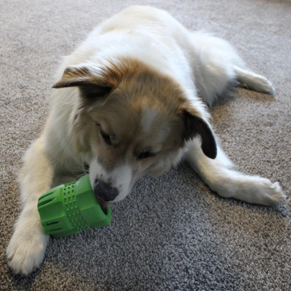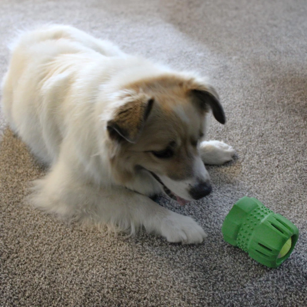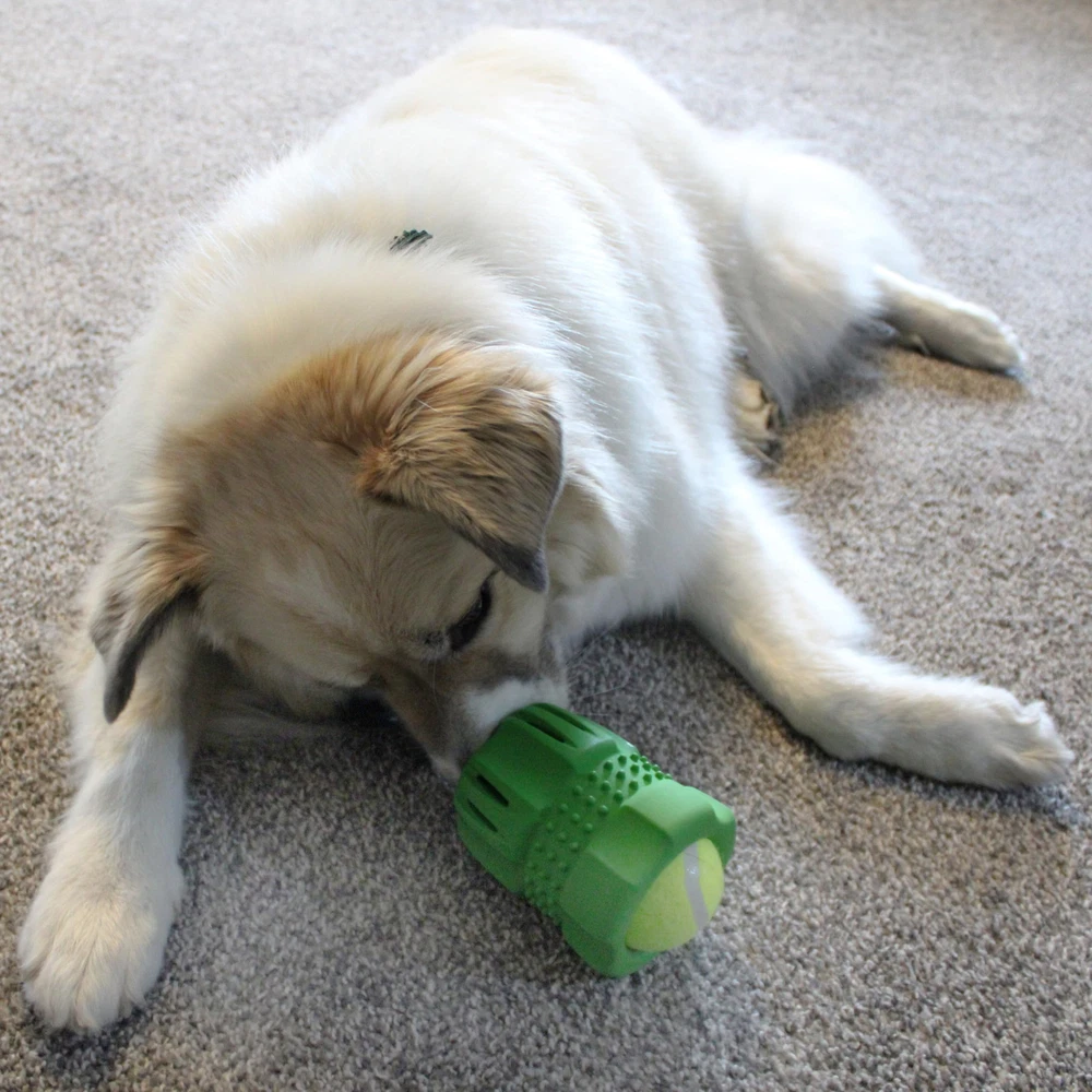 Barrett Tough Tennis Jumble Dog Toy for Large Dogs - Durable Rubber Barrel & Ball Combo, Virtually Indestructible Puzzle Toy with Textured Surface for Dental , 4 in Barrel & 2.5 in Ball Interactive Challenge: The Barrett Tough Tennis Jumble engages dogs by challenging them to retrieve the ball from the barrel, providing hours of stimulating playtime and exercise. Built for Large Dogs: Specifically designed for large breeds, this durable toy meets the needs of bigger pups who love to chew and play hard, ensuring long-lasting fun. Virtually Indestructible: Made from solid rubber, this toy is built to withstand tough play and heavy chewing, offering a reliable option for even the most enthusiastic dogs. Healthy Playtime: The textured surface helps massage your dog's teeth and gums, promoting oral while they play, making it a great addition to their toy collection. Includes Tennis Ball: The 4-inch barrel shaped toy comes with a 2.5-inch tennis ball, adding extra excitement and versatility to playtime, allowing for fetching and interactive games both indoors and outdoors.