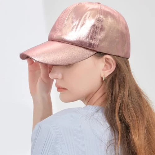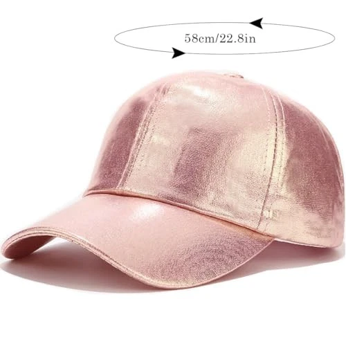 Baseball Cap for Women Men Shiny PU Leather Sun Hats Adjustable Laser Dark Pink