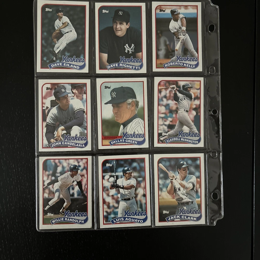This baseball card lot features a collection of 50+ cards from the 1989 Topps set, including players such as Kelly, Righetti, Leiter, and Clark. These cards are perfect for any collector looking to add to their collection, with a mix of base set, rookie, and 1st edition features. The cards are standard size and manufactured in the United States by Topps.The set includes cards from various teams, including the Yankees, and is perfect for fans of baseball and sports trading cards. Whether you're a collector or just looking to add some unique pieces to your collection, this lot is a great choice.