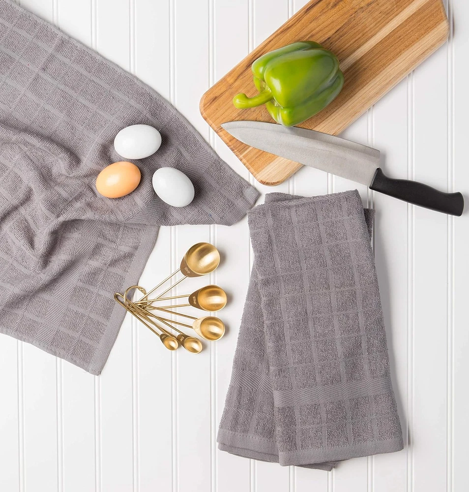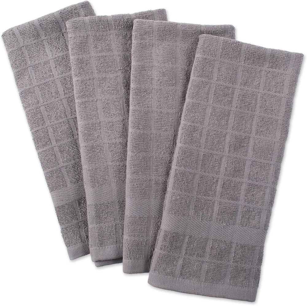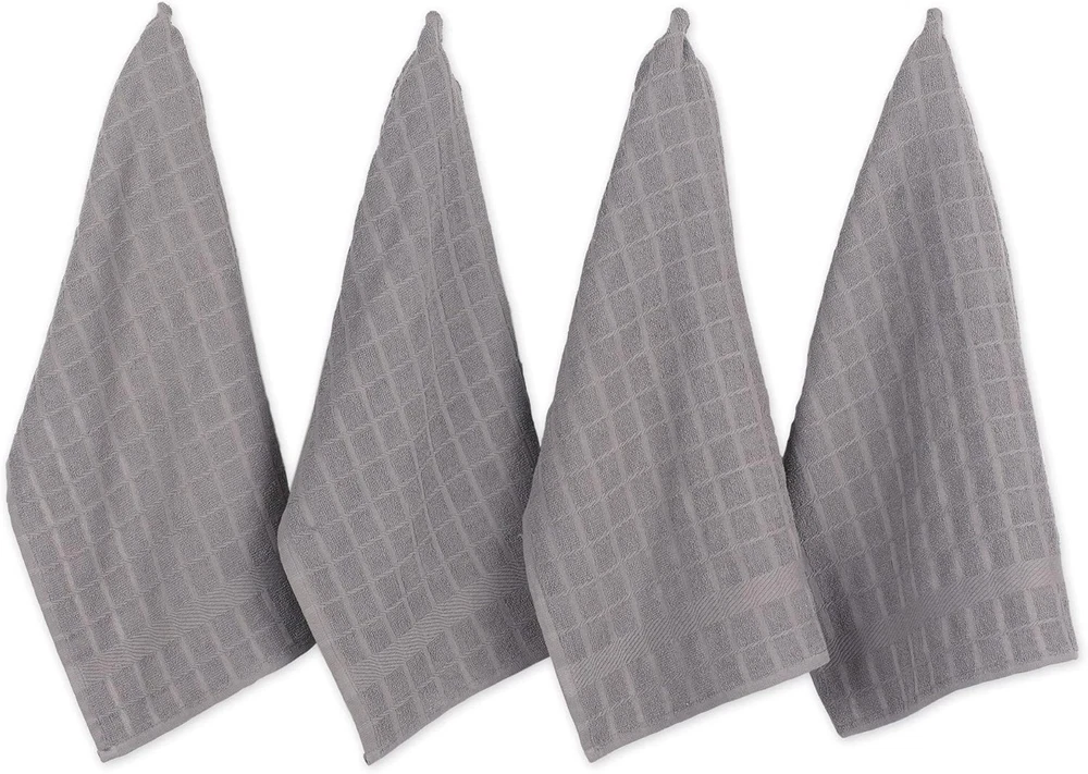 Basic Terry Collection Windowpane Dishtowel Set, 16X26, Graysolid, 4 Piece