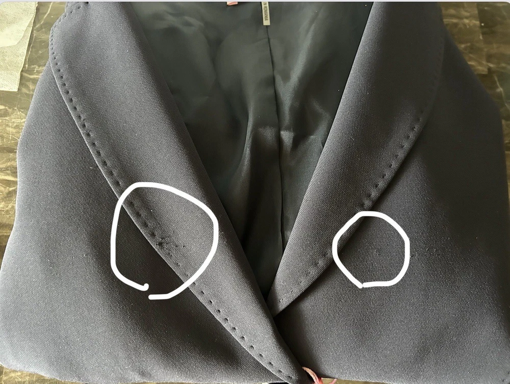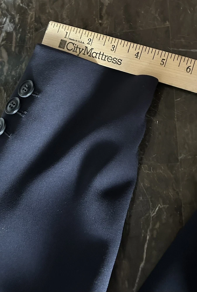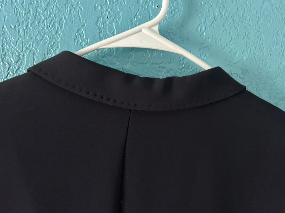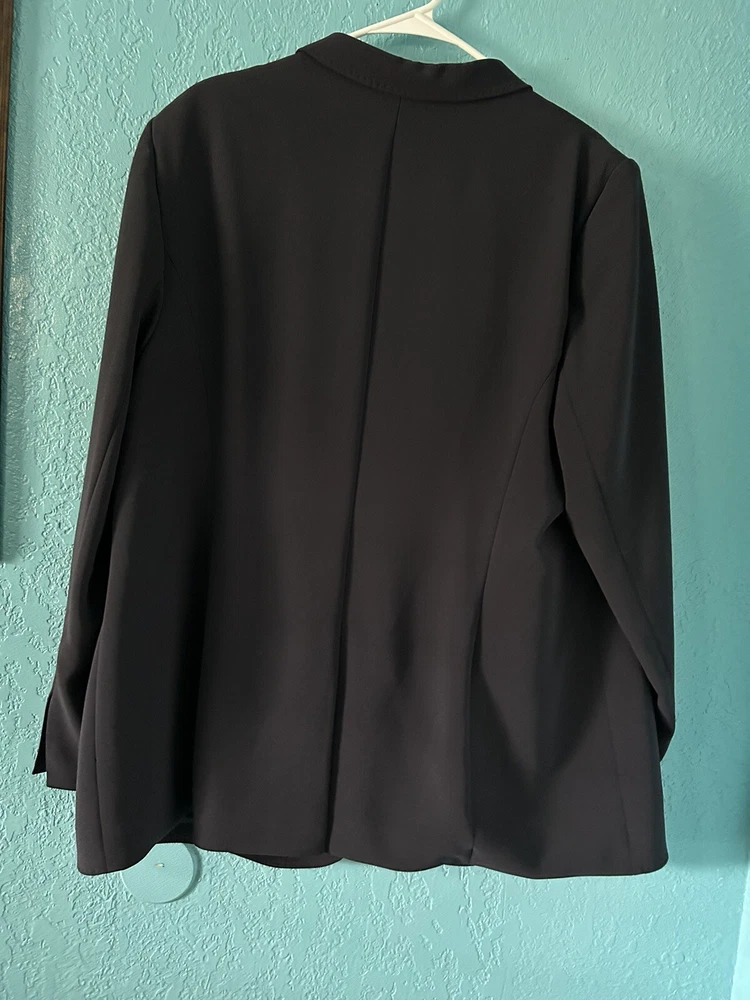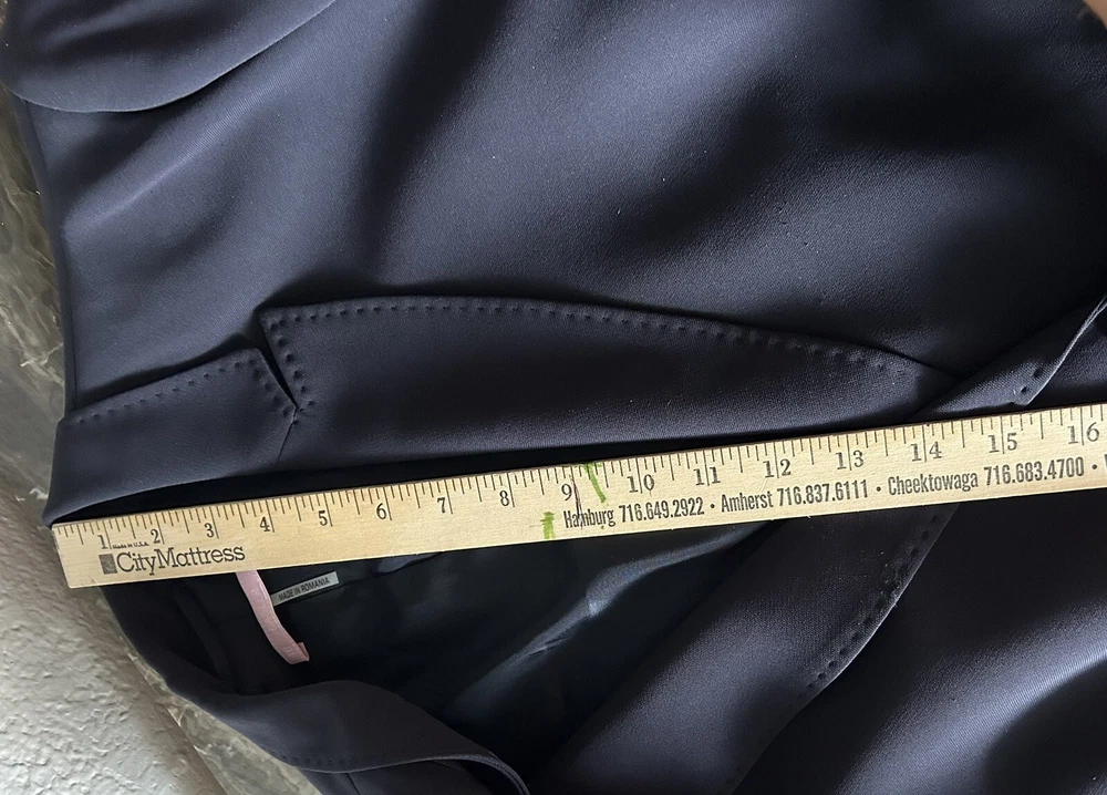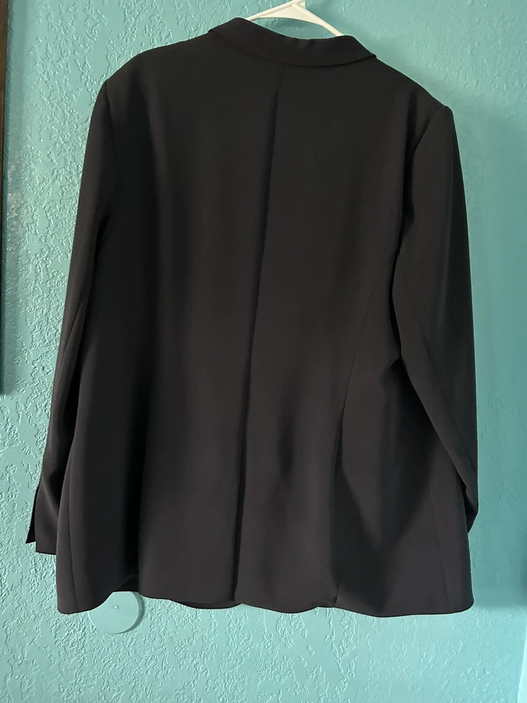 Basler 3 Button Front Blazer Jacket Color: Dark blue almost black Size FR 48.fits US:16 Pre Owned Please see pictures for measurements and details. Last picture show mark for wear a brooch .