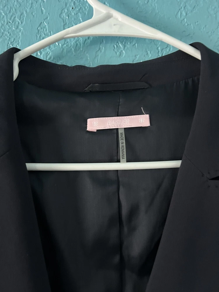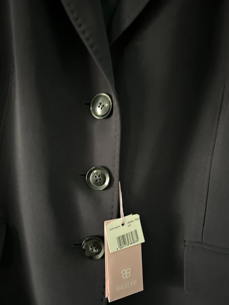 Size Type: Regular Style: Basic Jacket gtin13: Does not apply UPC: Does not apply Outer Shell Material: Viscose Vintage: No Size: 16 Brand: Basler Handmade: No Type: Blazer Country/Region of Manufacture: Romania Department: Women Color: Dark Blue Almost Black