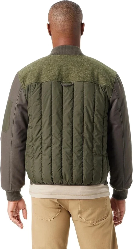 Bass Outdoor Men's Regular Fit Mixed Media Bomber Jacket in Green Solid Size L