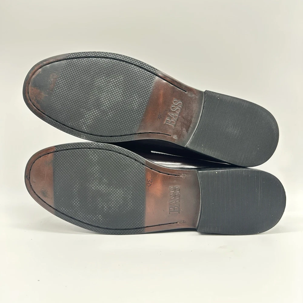 US Shoe Size: 11 Season: Fall, Spring, Summer, Winter Type: Dress Country/Region of Manufacture: Brazil Theme: City, Hipster, Preppy, USA Accents: Tasseled Outsole Material: Leather Lining Material: Leather Pattern: Solid Closure: Slip On Seller Notes: “Light cuffs on front, vintage shoes. See photos.” Brand: Bass Insole Material: Leather Department: Men Color: Brown Upper Material: Leather Model: Penny Customized: No Vintage: Yes Style: Penny Loafer