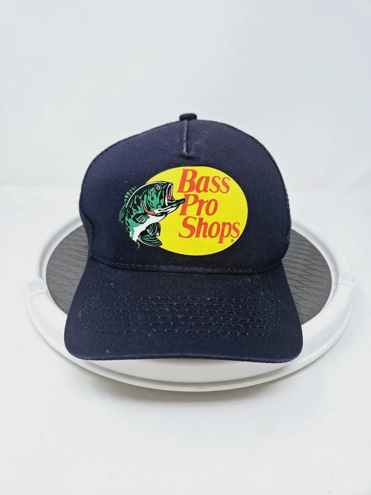 Department: Men Vintage: No Country/Region of Manufacture: Bangladesh Style: Snapback Features: Adjustable, Mesh Back Color: Blue Theme: Fish, Outdoor Brand: Bass Pro Shops Size: One Size