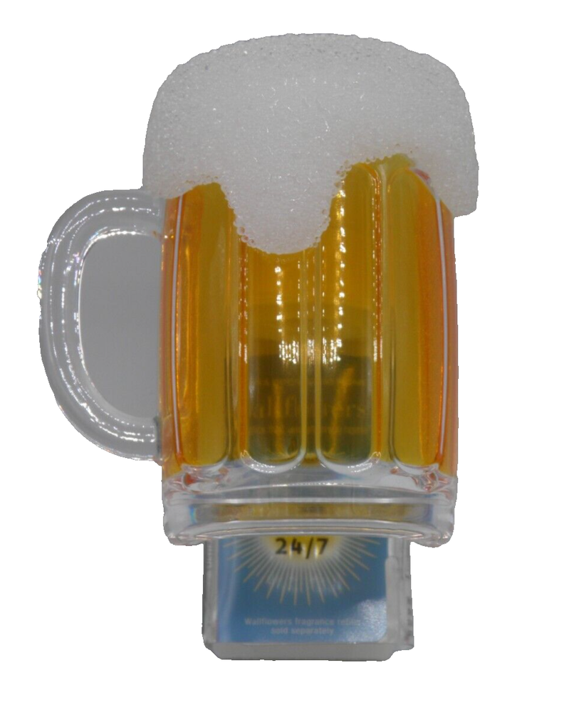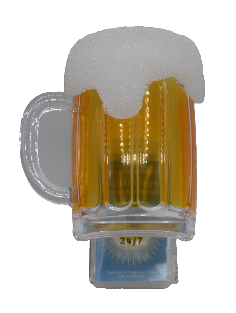 Pattern: BEER MUG Material: Plastic Brand: Bath & Body Works UPC: Does not apply Intended Use: wallflower plug Number in Pack: 1 Features: Diffuser, LIGHT-UP 24/7 Type: wallflower diffuser light-up Installation Area: Wall Power Source: Wall Plug-In gtin13: Does not apply