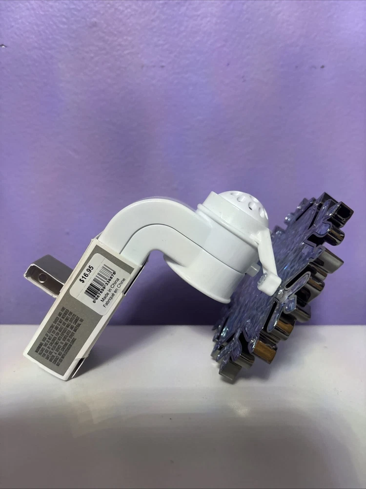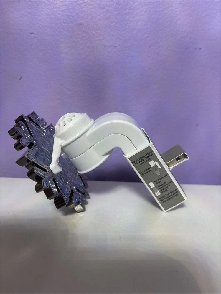 This Bath & Body Works Blue Snowflake Wallflower Plug In is a medium-sized wall plug-in fragrance diffuser featuring a traditional style with a blue plastic snowflake design. It is a single wallflower bulb plug that lights up 24/7, suitable for use in any room. Made in the United States, this plug-in is designed for adults and is branded by Bath & Body Works.