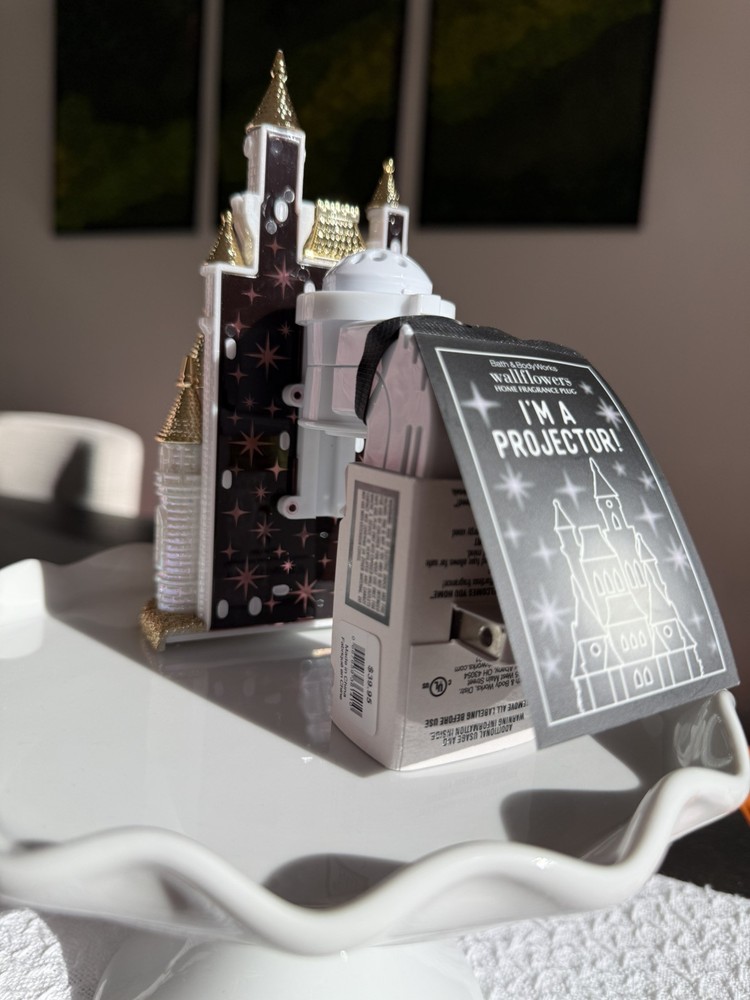 Elevate your home with the enchanting Bath & Body Works Cinderella Disney Princess Castle Projector Wallflower Plug In. Immerse yourself in the magic of Disney with this large, multicolor plastic wallflower that brings the charm of a princess castle into your living space. The wall plug-in is adorned with delicate embellishments, diffusing your favorite fragrances to create an ambiance that's fit for a queen. This piece is not just a mere decor item but a celebration of the Disney Princess legacy. The solid fragrance projector is designed to be a standout addition to any room, with a 6" height and 3.5" width that ensures it captures the eye without overwhelming your space. Crafted with care, it's a modern twist on timeless Disney charm, perfect for any admirer of the iconic tales.