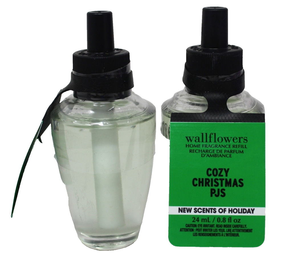 Installation Area: Wall Color: Clear Number in Pack: 2 Scent: Cozy Christmas Pj's Brand: Bath & Body Works Features: Diffuser Container Type: Glass Bottle Manufacturer: Bath and Body works Modified Item: No Humidity Control: No Power Source: Wall Plug-In Custom Bundle: Yes Number of Settings: 1 Form: Liquid Material: Glass Type: Refill