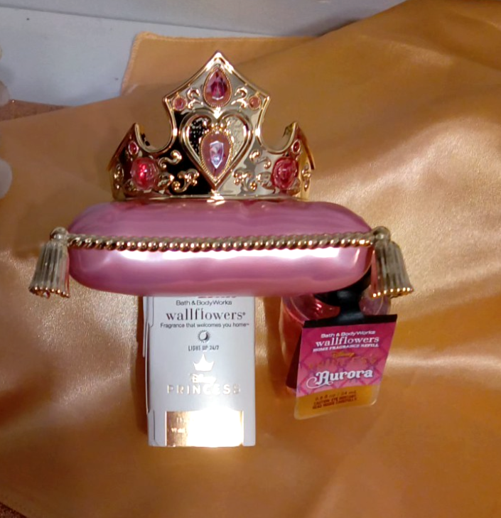 Bath& Body works With Disney Princess Collection Back! Limited Time Edition Aurora With the Scent of : soft rose petals, sandalwood dreams and sparkling fairy dust. Gift Set Comes w ith 3 wick Candle Wallflower plug in with refill Ultimate Hydration Body Cream , Body Wash 10 oz Fine Fragrance Mist 8 oz, Diamond Shimmer mist 4.9 oz Coin Purse & lip gloss Hand Soap 8.75 oz Hand Sanitizer & Pocketbac holder Dont miss this Collection please ask any questions Happy Shopping