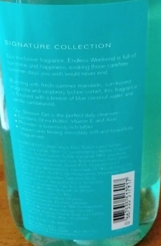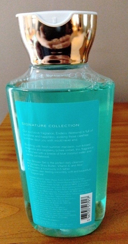 Formulation:GelProduct Line:Bath and Body worksVolume:10 fl ozUPC:Does not applygtin13:Does not applySize:Standard SizeIngredients:Shea ButterModel:Endless WeekendBrand:Bath & Body WorksCountry/Region of Manufacture:United StatesDepartment:UnisexType:Shower Gel