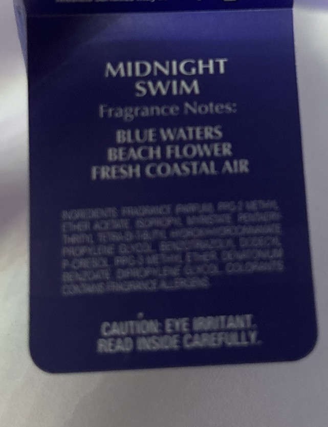This Bath & Body Works Midnight Swim Wallflower Refill is a 0.8 fl oz oil refill for wall plug-in diffusers. The refill is in a glass bottle and features a multicolor design. It is spill-proof, eco-friendly, and safe for pets. Intended for aromatherapy in the living room, it provides motivation and positive energy with a slow-burning, residue-free formula.