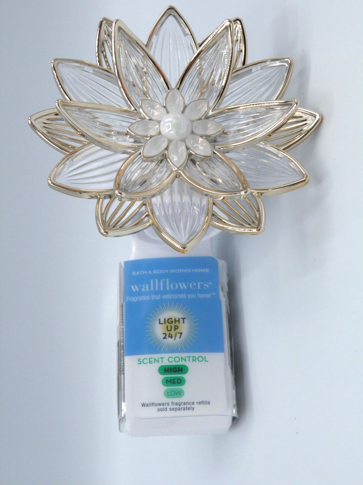 Features: Diffuser, Scent Control, Nightlight Pattern: Open Lotus Flower UPC: Does not apply Model: OPEN LOTUS NIGHTLIGHT SCENT CONTROL Wallflower Style: Traditional Installation Area: Wall gtin13: Does not apply Color: Multicolor Material: Plastic Theme: OPEN LOTUS NIGHTLIGHT SCENT CONTROL Wallflower Power Source: Wall Plug-In Type: wallflower diffuser LIGHT-UP Number in Pack: 1 Intended Use: wallflower plug Brand: Bath & Body Works